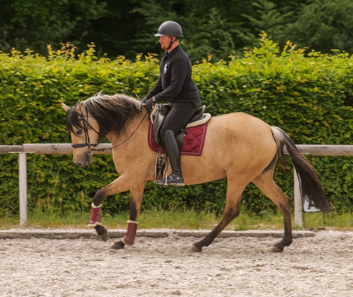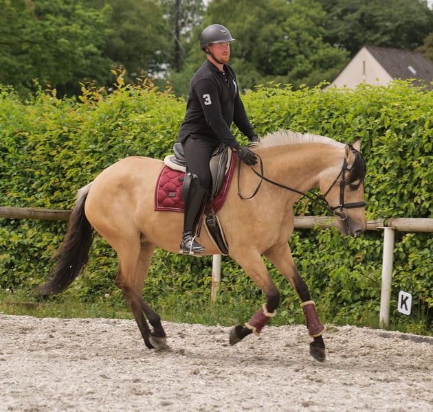 Nom : Lena Race : Cruzado (croisement) Sexe : Jument Date de naissance : 01/05/2015 Âge : 10 ans Taille au garrot : 1,60 m Couleur : Isabelle Origine : inconnue Caractère : sensible, curieuse, intelligente Formation / Aptitudes : loisir, travail à la longe Expérience en terrain : attentive, intrépide, en groupe Santé : vermifugée, vaccinée, pieds nus, sans eczéma, dents contrôlées, traitée en ostéopathie Hébergement : box, paddock Particularités : ferrée et déchargée sans problème, dominante dans le groupe Les caractéristiques mentionnées sont basées sur notre appréciation personnelle et ne constituent pas une garantie. Prix : 6 500 € (prix TTC) Vous avez suscité notre intérêt ? Pour vous donner une meilleure impression de Lena, nous serions ravis de vous envoyer sa vidéo de reprise. Bien entendu, nous restons à votre disposition pour une description détaillée du cheval, un conseil personnalisé et pour répondre à toutes vos questions, également par téléphone. N’hésitez pas à nous contacter à tout moment par WhatsApp ou à appeler au : +49 15119487595 Nos horaires téléphoniques sont quotidiens de 7h00 à 13h30 et à partir de 20h00. Nous serions heureux d’avoir de vos nouvelles ! Une visite vétérinaire ou une radiographie préalable à l’achat peut être effectuée par le vétérinaire de votre choix. Lena peut également être livrée en toute sécurité et confortablement à votre nouveau domicile. Nous prenons en charge toutes les préparations nécessaires et le transport, afin que votre nouveau compagnon arrive sans stress, bien soigné, assuré et en bonne santé. Actuellement, nous proposons une sélection soigneusement choisie de chevaux à vendre. Chez nous, vous trouverez sûrement le cheval de vos rêves. N’hésitez pas à visiter notre site internet : www.marvinsroyalhorses.de. Chers clients, nous serons heureux de vous présenter nos chevaux et de vous permettre de les brosser, monter, longe, faire du travail à la longe ou du travail en liberté en carrière, sur le terrain ou en manège, pour mieux connaître votre futur compagnon. La séance coûte 40 € par cheval, 30 € pour chaque cheval supplémentaire, et sera remboursée lors de l’achat. Notre adresse : Grube Ferdinand 50 53577 Neustadt Wied Google Maps : marvinsroyalhorses