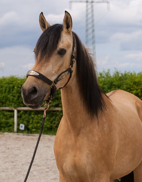 Name: Lena Rasse: Cruzado (Kreuzung) Geschlecht: Stute Geburtsdatum: 01.05.2015 Alter: 10 Stockmaß: 1.60m Farbe: Falbe Abstammung: nicht bekannt Charakter: sensibel, neugierig, intelligent Ausbildung/Eignung: Freizeit, Bodenarbeit Geländeerfahrung: aufmerksam, unerschrocken, in der Gruppe Gesundheit: entwurmt, geimpft, Barhufer, ekzemfrei, Zähne kontrolliert, ostheopatisch behandelt Haltung: Box, Offenstall Besonderheiten: schmiede und verladefromm, ranghoch Die genannten Eigenschaften beruhen auf unserer persönlichen Einschätzung und stellen keine zugesicherten Merkmale dar. Preis: 6900€ (Bruttopreis) Haben wir ihr Interesse geweckt? Um Ihnen einen besseren Eindruck von Lena zu geben, senden wir Ihnen sehr gerne ihr Reitvideo zu. Selbstverständlich stehen wir Ihnen für eine ausführliche Beschreibung des Pferdes, persönliche Beratung und zur Beantwortung aller Ihrer Fragen auch telefonisch zur Verfügung. Bitte schreiben Sie uns hierfür jederzeit eine WhatsApp Nachricht, oder rufen unter folgender Telefonnummer an: +49 15119487595 Unsere Telefonzeiten sind täglich von 7:00 - 13.30 sowie ab 20 Uhr. Wir freuen uns über Ihre Kontaktaufnahme! Eine klinische oder Röntgenologische Ankaufsuntersuchung kann gerne vom Tierarzt Ihrer Wahl durchgeführt werden. Natürlich kann Lena sicher und komfortabel in Ihr neues Zuhause geliefert werden. Wir kümmern uns um alle notwendigen Vorbereitungen und den Transport, damit Ihr neues Pferd stressfrei, gut betreut, versichert und wohlbehalten im neuen Zuhause ankommt. Zurzeit präsentieren wir eine sorgfältig ausgewählte Vielfalt an Verkaufspferden an. Bei uns finden Sie garantiert Ihr Traumpferd. Besuchen Sie uns auch gerne auf unserer Homepage unter: www.marvinsroyalhorses.de. Sehr geehrte Kunden, gerne stellen wir Ihnen unsere Pferde vor und führen, putzen, satteln, longieren, Bodenarbeit sowie probereiten in der Reithalle, auf dem Platz oder im Gelände ist Ihnen möglich, um Ihr neues Familienmitglied näher kennenzulernen. Dieses kostet für ein Pferd 40€, für jedes weitere 30€ und wird beim Kauf wieder erstattet. Unsere Adresse lautet: Grube Ferdinand 50 53577 Neustadt Wied Google Maps: marvinsroyalhorses