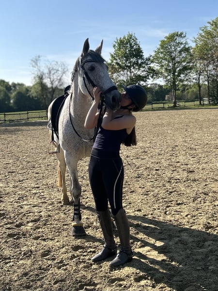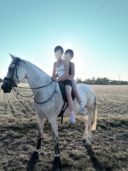 With a heavy heart, I am offering my 10-year-old gray mare, Akira, for sale. She stands at 16.1 hands and impresses especially with her calm, balanced, and people-oriented nature. She is an excellent choice for leisure riders as well as for children and teenagers seeking a reliable and secure partner. In daily handling, Akira is always well-behaved, patient, and uncomplicated. She is shoe- and load-trainable and can be easily managed even by less experienced riders. Under saddle, she is comfortable to ride, gentle, and responds finely to aids without becoming nervous or hurried. She is also an absolute trustworthy partner in the field. Whether on the riding arena or in the indoor hall, she shows a willing and dependable attitude to learning. Akira is healthy, regularly vaccinated and dewormed, and familiar with both box and pasture turnout. Thanks to her friendly nature, she gets along well with other horses. A true heart horse for anyone looking for a safe, loving, and uncomplicated leisure companion – also ideal for children starting in equestrian sports. If interested, we look forward to hearing from you and are happy to provide further information.