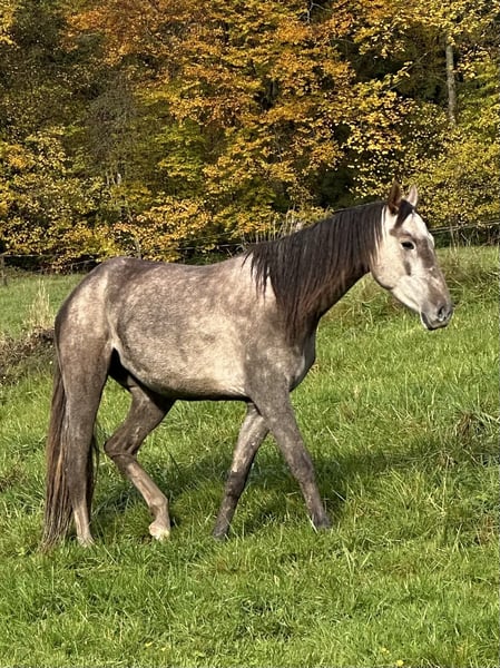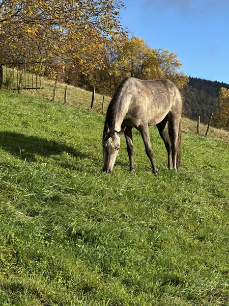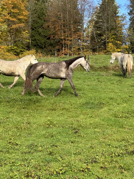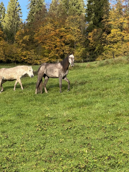 Diese bezaubernde Cruzado-Stute steht bei mir zur Ausbildung und sucht noch ihren für Immer Menschen. Sie ist das perfekte Freizeitpferd, eine Freundin die mit ihrem Menschen durch dick und dünn geht. Diese hübsche Schimmel-Stute wurde im Jahr 2022 in der Schweiz geboren und überzeugt durch ihr freundliches Wesen und ihre elegante Erscheinung. Mit einem Stockmaß von ca 154 cm ist sie ideal für Reiter, die ein zuverlässiges und vielseitiges Pferd suchen. Sie ist bestens für Trail, Wanderrite oder Distanz geeignet und zeigt sich im Umgang äußerst liebenswert und anständig. Sie steht bei mir im Offenstall, ist äusserst sozial und wird nur in Offenstall oder tagsüber Gruppehaltung abgegeben. Bei Interesse, weiteren Fragen oder Besichtigungen stehe ich Ihnen gerne zur Verfügung! Preis VB, passt sich dem steigenden Ausbildungsniveau an