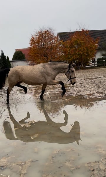 Herzenspferd Lola sucht ihr 5-Sterne-Zuhause - Cruzado mit Lusitano Blut Schweren Herzens habe ich mich dazu entschieden, meine Stute Lola zu verkaufen. Ich liebe dieses Pferd von ganzem Herzen, muss mir jedoch aufgrund meiner derzeitigen gesundheitlichen Situation und meines Berufs eingestehen, dass ich ihr nicht mehr so gerecht werden kann, wie sie es verdient. Lola ist im April 2022 geboren und seit sie ein Absetzer ist, in meinem Besitz. Sie wurde professionell angeritten und durfte anschließend bewusst noch wachsen. In dieser Zeit hat sie noch einmal deutlich zugelegt – sie ist sehr groß, sportlich gebaut und bringt viel Präsenz mit. Sie ist ein perfektes Damenpferd, besonders für die Working Equitation geeignet, da sie sich bereits sehr schön versammelt. Auch Dressur kann ich mir für sie sehr gut vorstellen. Zusätzlich zeigt sie sich talentiert am Sprung. Lola ist immer motiviert und bereit mitzumachen, dabei stets brav. Altersbedingt muss sie natürlich noch viel lernen. Aktuell ist sie nicht antrainiert, daher ist ein Probereiten nicht wirklich möglich. Wie es sich für ein Jungpferd gehört, hat sie manchmal ein paar Flausen im Kopf – dabei ist sie jedoch immer händelbar. Sie ist extrem menschenbezogen, kuschelt sehr gerne, liebt Aufmerksamkeit und spielt für ihr Leben gern. Lola ist feinfühlig, mutig und absolut ehrlich. Gesundheitlich ist sie topfit, war bei mir immer gesund und hatte noch nie gesundheitliche Probleme. Die Zähne wurden frisch gemacht, beide Wolfszähne sind bereits entfernt. Sie hat sehr gute Hufe, steht korrekt da und wird vermutlich noch ein kleines Stück wachsen. Sie zeigt sich definitiv talentiert im Sport, sie kann sich bewegen und bringt viel Potenzial mit. Ich gebe Lola ausschließlich in ein absolutes 5-Sterne-Zuhause ab: • Keine reine Boxenhaltung • Keine Händler • Keine Reitschulen • Abgabe nur mit Schutzvertrag • Gewünscht ist ein liebevolles Zuhause oder eine herzliche Familie Der Preis ist verhandelbar, ein Sattel wäre dabei. Platz vor Preis! Diese Entscheidung fällt mir unendlich schwer, doch Lolas Wohl steht für mich an erster Stelle. Ich wünsche mir für sie einen Menschen, der sie genauso liebt und fördert, wie sie es verdient. ⸻ Telefonisch unter 017620333189 kann man sich bei mir melden :)