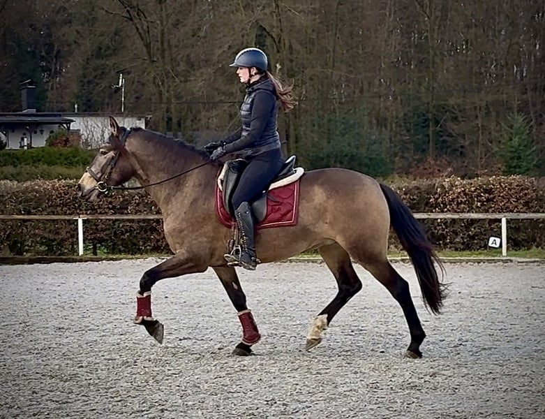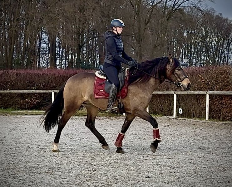Name: Lucera Breed: Crossbred Gender: Mare Date of Birth: April 10, 2021 Age: 4 years Height: 15.7 hh Color: Buckskin Pedigree: No pedigree documentation available Temperament: eager to learn, curious, intelligent, brave, patient Training/Suitability: ridden, dressage, leisure riding, baroque riding, working equitation Trail Experience: attentive, steady nerves, reliable, fearless, confident alone and in groups Health: dewormed, vaccinated, barefoot, eczema-free, teeth checked, osteopathically treated Stabling: box stall, pasture turnout Special Features: farrier and loading-safe, herd-friendly Please note: The described characteristics are based on our personal assessment and do not constitute guaranteed traits. Price: €6,900 (including VAT) Have we piqued your interest? To give you a better impression of Lucera, we are happy to send you her riding video. Of course, we are available for a detailed description of the horse, personal consultation, and to answer all your questions by phone. Feel free to contact us anytime via WhatsApp or call us at: +49 151 19487595 Our phone hours are daily from 7:00 to 13:30 and from 20:00 onwards. We look forward to hearing from you! A clinical or radiological pre-purchase examination can be carried out by your veterinarian of choice. Lucera can be safely and comfortably delivered to her new home. We handle all preparations and transportation to ensure your new horse arrives stress-free, well cared for, insured, and in good health. Currently, we offer a carefully selected variety of sale horses. With us, you are sure to find your dream horse. Visit us also on our website at: www.marvinsroyalhorses.de Dear customers, we are happy to introduce you to our horses. You are welcome to lead, groom, saddle, longe, do groundwork, or take test rides in the riding hall, on the arena, or in the field to get to know your new family member better. The fee is €40 for one horse and €30 for each additional horse, and it will be refunded upon purchase. Our address: Ferdinand Street 50 53577 Neustadt-Wied Google Maps: marvinsroyalhorses