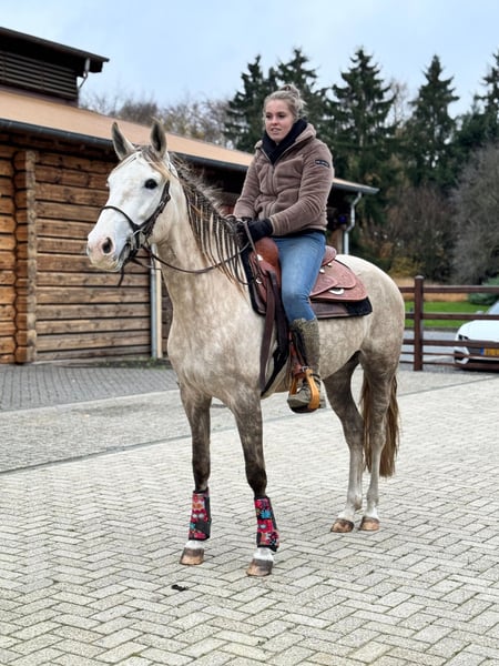 🍏🍎 APPLE 🍎🍏 Ben jij opzoek naar een veelzijdig paard, die haar looks mee heeft, en jou wat uitdaging biedt in het rijden? Dan lees vooral even verder! Apple is een 7 jarige merrie die al 1 prachtige gezonde veulen op de wereld heeft mogen zetten. Op haar paspoort wordt ze omschreven als een cruzado, maar wij denken dat er ook wat Quarter bloed in haar zit. Apple is 1,5 jaar geleden getraind door Trudy Vd Plas, waarna zij in de manege lessen zou gaan lopen. Helaas was dit geen succes in verband met haar onzekere karakter. En staat ze nu weer terug bij Trudy van der Plas in Boekel om het juiste huisje voor haar te vinden. Apple heeft behoefte aan 1 ruiter, die weet wat ze wilt, zodat Apple daar in kan volgen. Dat betekent absoluut niet dat ze gevaarlijk is of wat dan ook, sterkter nog; het is een paard wat nooit zal schrikken. In de bossen vindt ze het dan ook het leukste! Is 1000% verkeersmak maar in de bak heeft ze gewoon een duidelijke hand nodig. In de omgang is ze lief, aanhankelijk en eerlijk, maar ook sensibel. Apple hecht zich sterk aan één persoon en bloeit op bij vertrouwen en consequentheid. Zodra ze die klik voelt, gaat ze helemaal voor je. - Spaanse mix merrie - Geboren: 01-04-2019 - Hoogte: om en nabij 1.55 m - Lief, sensibel en trouw karakter - Niet geschikt voor beginners - Ben jij die ervaren ruiter die haar met rust, vertrouwen en liefde verder wil begeleiden? Ben jij die ruiter? Neem dan snel contact met een van ons voor het maken van een afspraak of om video's op te vragen. Apple is altijd netjes geënt, ontwormd etc. En kent geen gebreken. Keuren door een eigen dierenarts is toegestaan K.K.