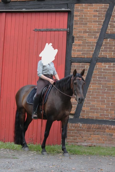 Zum Verkauf steht eine bildhübsche dunkelbraune Cruzado Stute mit einem Stockmaß von ca. 162 cm. Sie überzeugt durch ihr korrektes, kompaktes Gebäude und ihr angenehmes Wesen. Colina ist barhuf, regelmäßig entwurmt und geimpft und kennt sowohl Boxenhaltung mit Paddock als auch im Sommer 24-Stunden-Weide. Aufgrund von sehr reichhaltigem Heu ist die Stute aktuell etwas übergewichtig. Charakterlich ist sie ein echtes Herzenspferd: sehr lieb, menschenbezogen, freundlich und aufgeschlossen gegenüber Mensch und Pferd. Colina ist feinfühlig, intelligent, lernwillig und interessiert an neuen Aufgaben. Neue Inhalte nimmt sie schnell auf und arbeitet stets motiviert mit. Unter dem Sattel überzeugt sie durch sehr weiche und angenehme Grundgangarten. Die Stute wurde vielseitig gearbeitet und ist ein echtes Allroundtalent. Angeritten wurde sie im Westernstil und kennt bereits Brücke, Stangenarbeit, Sidepass und weitere Elemente. Aktuell wird sie in klassischer Reitweise weiter ausgebildet und lernt unter anderem Anlehnung, Schulterherein und Gangverstärkungen. Aufgrund ihres aktuellen Ausbildungsstandes ist sie noch nicht für Anfänger geeignet. Zwar lässt sie sich von unerfahrenen Reitern lenken, benötigt jedoch reiterliche Unterstützung bei Anlehnung und den Lektionen. Im Gelände zeigt sie sich in der Gruppe entspannt, alleine ist sie noch etwas wachsam. Sie passt ideal zu einer feinfühligen, ruhigen und reiterfahrenen Person, die Freude daran hat, sie weiter auszubilden und regelmäßig zu fördern. Mit ihrem liebevollen Wesen und ihrem großen Potenzial ist sie ein echtes Traumpferd und wartet auf ihren passenden Menschen. Leider wurde bei einer AKU ein leichter Zufallsbefund festgestellt.