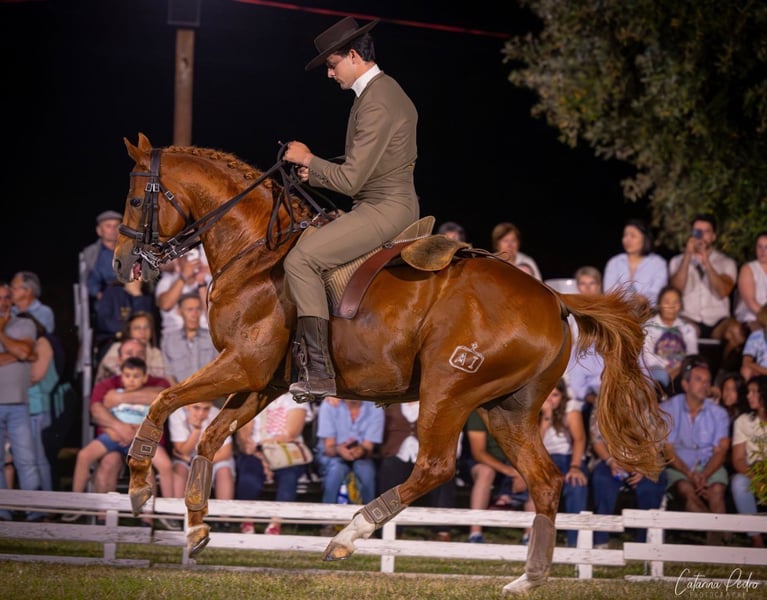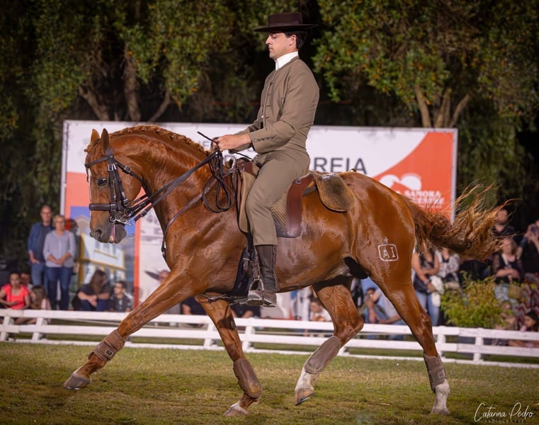 Sehr lieber und freundlicher Hengst. Ausgebildet im hohen Niveau in Working Equitation und Dressur. Einfache Fliegenschritte und Tempiwechsel 4, 3, 2 sowie Pirouetten. Hat Show-Erfahrung. Standort in Zentralportugal.