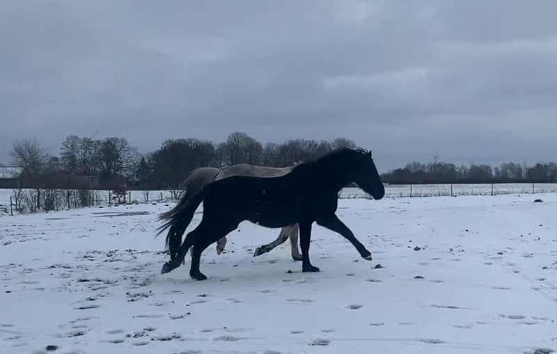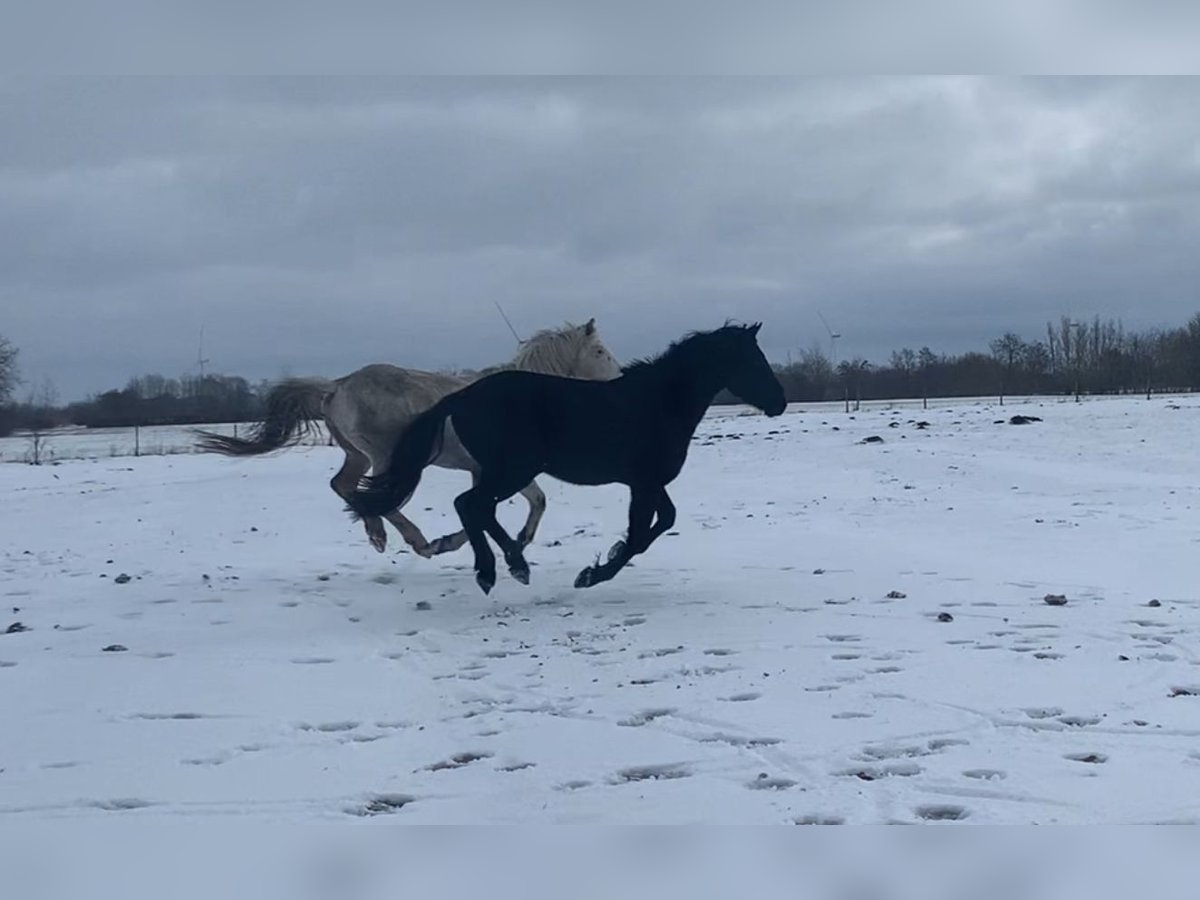 Rappe ohne Abzeichen, kompakter barocker Körperbau, Damenreitpferd, super schöner Behang und herrliche nicht übertriebene aber ausdrucksstarke Bewegungen. Charakterlich ist Delano ein Goldschatz, der mit seinem Reiter durchs Feuer gehen wird. Mutig, dem Menschen zugewand, in sich ruhend, verspielt, lernwillig. Er ist als Cruzado Iberico eingetragen, seine Mutter ist eine Warlander Stute, sein Vater ein Reitponyhengst. Eine gelunge Kombination! Er wird nur schweren Herzens aufgrund veränderter Lebensumstände in reiterlich fördernde Hände abgegeben. Bestens geeignet für die barocke, iberische, akademische Reitkunst und auch als Showpferd kann ich ihn mir sehr gut vorstellen. Wohlerzogener, reiseerfahrener (Stallwechsel, Pferdeanhänger und kleiner LKW), geländesicherer Junghengst (Spaziergänge, Handpferd). Spätentwickler!