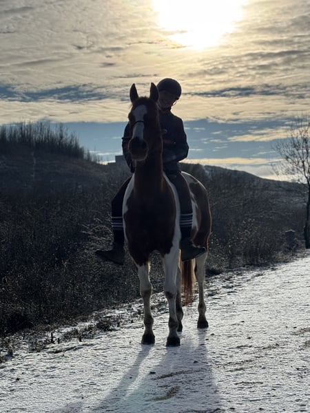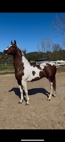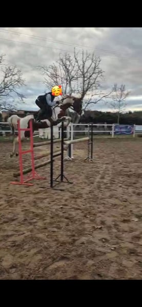 Great opportunity to acquire a 14-year-old, fully intact, pinto pony. This pony has been tested over jumps with 14-year-old children, and is spectacular, calm, and easy to handle. For more videos and information, feel free to contact me via message. He has completed courses at home up to 1.05 meters and has potential for more. You are welcome to come see and try him. Please note, I only respond to messages, not calls.