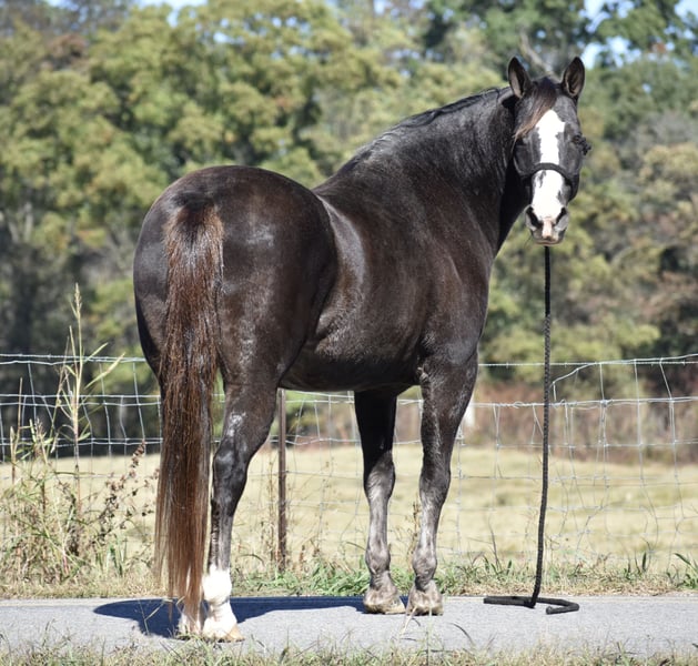 ⚜️𝐓𝐇𝐄 𝐅𝐀𝐋𝐋 𝐇𝐄𝐑𝐈𝐓𝐀𝐆𝐄 𝐂𝐋𝐀𝐒𝐒𝐈𝐂⚜️ Happening now thru MONDAY | NOVEMBER 3rd - Available EXCLUSIVELY on HorseBid's website! For more details and to register visit: www.Horsebid.com CONSIGNOR CONTACT: Brody Price 423-716-0323 LOCATION: Cleveland TN BREED: Saddle horse REGISTERED: No COLOR: Black roan HEIGHT: 15.1 AGE: 12 GENDER: Gelding Jelly Roll Are you looking for a gentle giant to share your adventures with? Look no further than Jelly Roll, a 12-year-old saddle horse gelding with a heart of gold! Standing at 15.1 hands, Jelly Roll is suitable for riders of all ages and experience levels, from 8 to 80 years old. Jelly Roll is a calm and composed companion, always eager to please. He stands patiently for shoeing, saddling, grooming, and bathing, making him a breeze to care for. His gentle nature ensures that he's easy to catch, and he'll happily follow you around. Jelly Roll has been trained to respond to one-hand cues, making him an excellent choice for riders of all skill levels. Whether you're a seasoned pro or a beginner, Jelly Roll will guide you smoothly and effortlessly. Jelly Roll's calm demeanor and gentle disposition make him an ideal companion for: - Children and adults looking for a reliable trail horse - Experienced riders seeking a smooth ride - Seniors or those with mobility issues who need a gentle and patient mount *Don't miss out on this wonderful opportunity* If you're looking for a loyal companion that will be by your side through thick and thin, Jelly Roll is the perfect choice. Contact us today to schedule a test ride and discover the joy of riding with this gentle giant! You can buy with confidence!!