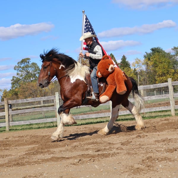 "AVAILABLE ON ONLINE HORSE AUCTION AT www DOT MagicHorseAuction DOT com BIDDING OPEN NOW thru TUESDAY | MARCH 3RD! BUY IT NOW AVAILABLE! *Final price will be determined on auction site* CONSIGNOR CONTACT INFO:ELLESSEE SCHWARTZ #248-390-6831 LOCATION:Howell, MI" We would love to introduce Blackstones Charles. This 6 year old 17hh spotted draft gelding has it all. From his captivating personality to his stunning conformation and painted color. Charles lacks nothing. Charles is the type of horse who wants to be your best friend. He plays well with all the others outside and will catch you when you walk to the pasture. Charles is extremely well broke. He walk, trots, canters and stops on a dime. His transitions are flawless both upward and down. Charles steers off seat and leg so well you don’t even need a bridle. He will gladly take a bit, snaffle or shank he’s not fussy or just pull the bridle right off and he steers with all leg ques. He builds you up every ride and makes you want to get on. Charles has loads of experience out on the trails from the mountains of MO to the open fields of MI he’s seen it. Water, deep woods, roads, wildlife no problem. Charles has been ridden in groups of 40 horses. He will take any place you ask in the group and is not one to get worked up. He’s also been out alone. He’s been driven single and double. He has worked in busy city's, in traffic and crowds of people. He stands to harness. He stands at stop signs and he will stand for passengers to get on and off the carriage. He has a great amount of training in the arena as well. He will easily steep into the lope, and can canter small circles on both leads. Charles is very balanced and light on his feet. He’s completed our desensitizing program. Pool noodles, tarps and bridges are all no problem for him. He is a very brave horse. Charles is the horse to teach you the ropes, the one you can depend on and he’s loaded with personality. He is sure to win you over with one glance into his big soft eyes! Charles lives in Howell, MI
