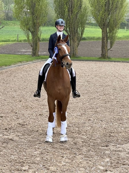 KK’s Look At Me is an impressive gelding with three excellent basic gaits. He has a large, ground-covering walk, a lively, springy trot, and a generous, expansive canter. His wonderful temperament makes him a joy to ride, even at competitions, as he never spooks or shies away – a true gentleman. Training & Achievements Look has competed successfully up to and including MB2 and is now ready for MA + PSG. He demonstrates beautiful straight change series in 4-tempis, 3-tempis, and 2-tempis with big jumps and has started with the one-tempis. He is easy and sensitive to ride and enjoys going out on trails. He has achieved numerous beautiful results, including placements at 4/4 championships. Look is a horse that stands out immediately in the competition arena. Always cheerful with pricked ears, he is ready to go through fire for his rider. Potential Uses He would be an ideal horse for juniors/young riders, but also for the demanding rider looking for a correctly trained and well-prepared horse. Health & Care Look has always been healthy and injury-free. He is only shod in front. Regularly attended by a farrier, dentist, physiotherapist, masseur, and saddler. Current X-rays are available. Special Features This is a rare opportunity to acquire a wonderfully trained and well-cared-for gem. The decision is not easy for us – therefore, the right home takes precedence over the price. The sale is solely due to the rider's start of studies.