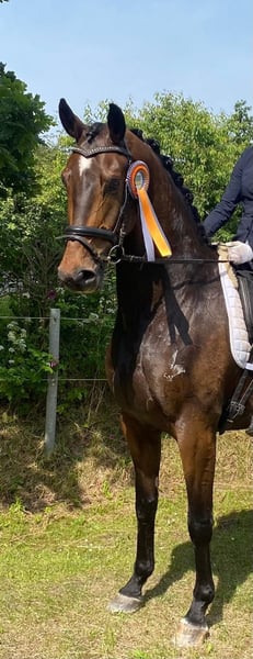 For sale is an elegant and talented Danish Warmblood gelding, born in 2015. With his dark bay coat and a height of 16.1 hands, he is both visually striking and has an appealing character. The gelding has a solid basic education in dressage and demonstrates great talent as well as a strong willingness to learn. He is friendly and reliable in handling, making him suitable for ambitious leisure riders as well as for competitive riders seeking a dependable partner. If interested or for further information, please feel free to contact me. Viewing and test rides are available by appointment.
