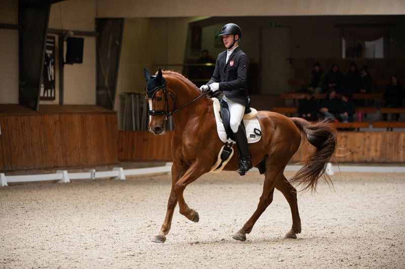 For sale is a dressage gelding (170 cm at the withers) who regularly competes in competitions with results below 67% in class N. At home, he performs elements of level C. He has won the provincial championships multiple times and placed 8th at the Polish Junior Championships (OOM). This horse has a cuddly and teddy bear type personality, making him a great introduction to the world of dressage and competitions. The horse is located 15 km from the western border of Krakow. Please contact me by phone. +48 727 662 892