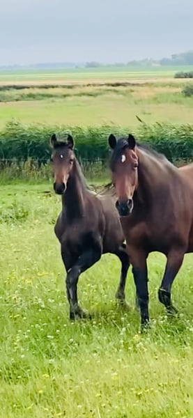 Hengstnachwuchs von Continental Blue. Kraftvolle Gänge. Die Mutter stammt von Chacco-Lido ab und hat einen Hengst hervorgebracht, der 2024 an der Hengstleistungsprüfung in Herning teilgenommen hat. Als vierjähriger Pferd qualifizierte er sich für die Jungpferde-Championship und wurde Sechster. Alle Nachkommen zeichnen sich durch einen sehr kraftvollen Sprung aus, sind sowohl vorsichtig als auch mutig. Aus derselben Mutterlinie habe ich diesen einjährigen Hengst, einen Fohlen von Diablue, sowie eine dreijährige Stute von Diaron. Bild und Video des Grauen zeigen den Bruder (Hengst, der in Herning war). Das Video mit den Fohlen: Er ist der Braune.