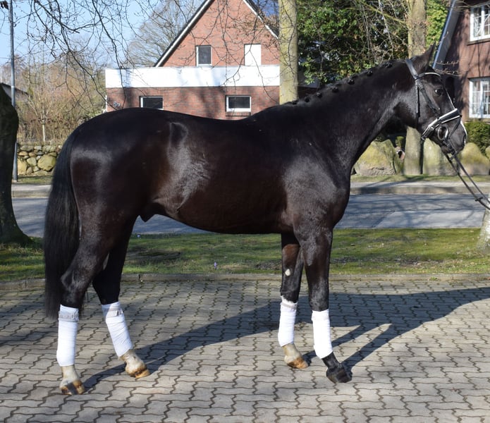 Modernes, bildschönes Pferd mit tollen Charakter. Gekoppelt mit hervorragenden Dressurbewegungen, gibt er ein rundes Gesamtbild ab. Wie geschaffen für den anspruchsvollen Dressursport. Solei hat seine Ausbildung angefangen, ist bereits anlongiert und kennt Reitergewicht. Besichtigung jederzeit nach Absprache möglich. Mehr Infos finden Sie auf unserer Homepage.