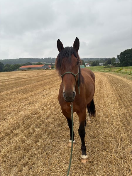 Zum Verkauf steht unser 4-jähriger Wallach Titus, ein schweres Warmblut mit einer aktuellen Größe von ca. 1,60 m. Titus wurde bei uns pferdegerecht im Natural Horsemanship gearbeitet und durfte in Ruhe lernen. Er kennt bereits Trense, Reitpad sowie Reitergewicht. In Begleitung eines anderen Pferdes geht er an der Hand mit ins Gelände. Hier zeigt er sich unerschrocken. Er ist geimpft, regelmäßig entwurmt und dem Schmied vorgestellt. Titus steht aktuell im Offenstall, ist sehr sozial und unkompliziert im Umgang mit anderen Pferden. Wir wünschen uns für ihn ein Zuhause mit ähnlicher Haltungsform. Ein freundlicher, neugieriger junger Wallach, der gefordert und weiter ausgebildet werden möchte. Leider werden wir ihm hier zeitlich nicht gerecht. Bei ernsthaftem Interesse freuen wir uns über eine Nachricht.