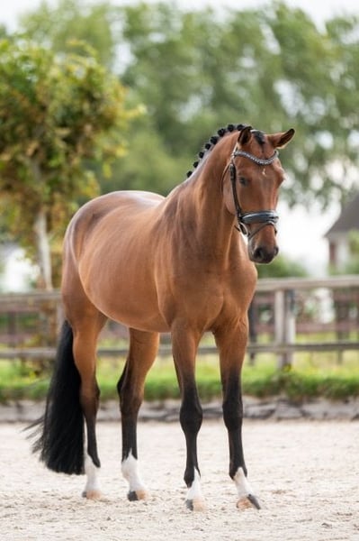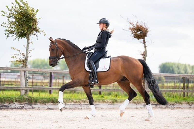 Batik's King is a very reliable, well-behaved dressage horse. We purchased him as a foal and have calmly trained him to his current level. He has a fantastic canter and easily performs his flying changes; additionally, he has a very good walk. Batik has a beautiful, steady contact and gives the rider a confident feeling. He is also very suitable for young riders. He behaves very well in competitions and loads easily. He is an easy horse to handle, with no stable vices or special quirks. He was twice regional champion of North Holland in 2025. Video available via the app.