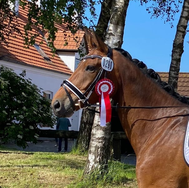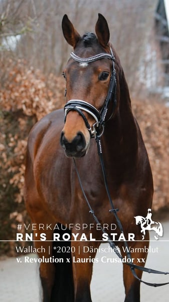 Prädestiniert für das große Viereck!!! Zum Verkauf direkt vom Züchter steht dieser elegante, großrahmige, sechsjährige Dressurwallach (Dänisches Warmblut, Stockmaß 172 cm). RN's Royal Star ist ein Traumpartner, der sich sowohl im Umgang, Training als auch in Prüfungssituationen auf Turnieren äußert routiniert, engagiert und nervenstark zeigt. So konnte er sich mehrfach in Dressurpferdeprüfungen der Klasse A platzieren und ging sogar siegreich mit einer Traumnote von einer 8,4 nach Hause. Bei der behutsamen Ausbildung in Richtung der Klasse L ist er sehr lernfähig und gibt immer sein Bestes die neuen Lektionen umzusetzen. Um sein Potenzial entfalten zu können, benötigt er einen feinfühligen Reiter, der ihn für den großen Sport fördert. Der Preis steigt im Takt seiner Ausbildung. RN's Royal Star stammt ab von Revolution/ Lauries Crusador xx/ World Class/ Cannon Row xx/ Herbststurm/ Solist/ Poet xx. Bei Interesse wenden Sie sich bitte direkt an Markus Waterhues: +49 171 3252488 Es werden keine Emails beantwortet! Die Mutter RN's Lady Crusador war 4-jährig Siegerstute der Veredlerstuten (Halbblutstuten) bei der Zuchtstutenprüfung des Dänischen Warmbluts. Außerdem ist sie bei der Zuchtstutenprüfung im Hannoveranerverband mit einer 9,0 in der Rittigkeit im Hauptstutbuch eingetragen. Bevor sie in die Zucht ging, war sie in Dressurpferdeprüfung kl A platziert. Die Großmutter (Mutter Mutter) Solvangs Havana war Siegerstute der 4-jährigen und älteren Dressurstuten bei der Zuchtstutenprüfung in ihrer Region im Dänischen Warmblut. Sie wurde im Hauptstutbuch eingetragen und bekam eine 8,5 in der Rittigkeit. Bei der Stutbuchaufnahme im Hannoveraner- und Oldenburger- Verband ist sie im Hauptstutbuch eingetragen. Aufgrund eigener Erfolge und der Erfolge ihrer Nachkommen hat sie das Prädikat Elitestute erhalten. Damit stellt sie sich in die ehrenvolle Reihe der Elitestuten im Stutenstamm. Der Bruder von Solvangs Havana: Solvangs Rivaldo (Regazzoni/Cannon Row xx) war in der USA erfolgreich bis zur schweren Klasse mit der ehemaligen Mannschaftsreiterin Cathleen Raine und der Besitzerin Jane Hayes. Im Mutterstamm ist die Elitestute Hebe Gamborg die Urgroßmutter zum dänisch gezüchteten Zuchthengst Milan. Außerdem ist der Stutenstamm durch Milan bei Zuchthengsten wie Hesselhoej Donkey Boy (Era Dancing Hit/ Milan), Donkey Boss (Hesselhoej Donkey Boy/ Zack) und Daan G. (Donkey Boss/ Don Olymbrio) repräsentiert. Weiter zurück im Mutterstamm ist die Elitestute Hella, die Mutter zum Zuchthengst Dolomit DH 314. Bei Interesse wenden Sie sich bitte direkt an Markus Waterhues: +49 171 3252488 Es werden keine Emails beantwortet!