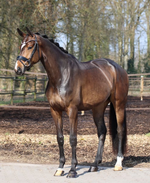 Talented 4-year-old dressage mare with exceptional quality For sale is a promising 4-year-old dressage mare, impressing with her excellent basic gaits, rideability, and willingness to work. She is appropriately trained for her age, well-started under saddle, and consistently demonstrates a eager learning attitude and motivation when ridden. The mare possesses significant quality for dressage and offers great potential for further development. She is well-behaved in handling, easy to manage on a daily basis, and remains highly motivated when ridden. Current X-rays are available. An attractive horse for ambitious riders seeking a talented young prospect for further training. Further information gladly provided upon request.