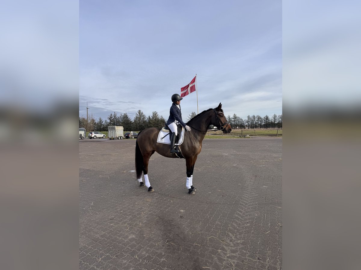 Athena is a 5-year-old Danish Warmblood mare, standing approx. 169 cm, with plenty of drive and ambition for the experienced rider who wants to go far. She is forward-thinking and athletic, able to collect, move laterally, and is quick-thinking in combinations. She approaches jumping with enthusiasm and joy. Athena is a sensitive and energetic mare who therefore requires an experienced rider — but she is never naughty. Bred with a strong focus on dressage, she also shows a natural talent and flair for jumping. She has a good eye for distances and jumps with style, despite having only been jumped under saddle 6–7 times so far. ✔ Red passport ✔ By Santos ✔ Clean X-rays ✔ Up to date with vaccinations, deworming, and farrier Athena has had a short growth and riding break but has now resumed training. She has participated in three shows mainly for experience and exposure, handling new environments with remarkable calmness and confidence. A quality young mare with exciting potential for the future.