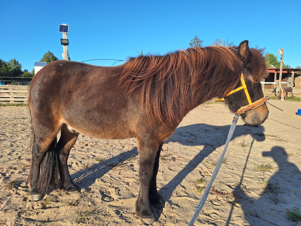 Schweren Herzens geben wir unseren 1,17m kleinen 9jährigen Ponywallach( kein Abstammungsnachweis, nach Vorbesitzer-Angaben ein Dartmoorpony) ab, da ihn die wechselnden Reiter und der Umgang mit Kindergruppen in unserer Reitpädagogikschule zu sehr stressen. Er sucht daher eine erfahrene Bezugsperson, die seine sensible Persönlichkeit zu schätzen weiß und auf ihn eingeht. -5jährig eingeritten durch Pony-Bereiterin (also nicht nur durch "bereits gut reitende" Kinder) -Bis vor kurzem durch eine 10 und eine 13 jährige Reitbeteiligung (sind nun leider rausgewachsen) geritten in allen Gangarten auf dem Platz und im Gelände. - zuverlässig beim geführten Reiten, auch im Gelände - lässt sich von etwas erfahrenen Kindern auch gut frei reiten - im Umgang braucht er eine sichere Person (bei ernsthaftem Interesse gerne mehr im persönlichen Gespräch) - kennt Longe, Doppellonge, Freiarbeit, Klassische Handarbeit und Langzügel - kennt clickern und Training mit der Pferdewippe - sehr aufmerksam und neugierig, reagiert auf feine Signale - mag Wasser (lässt sich gerne duschen) und ist motiviert im Gelände unterwegs - schmiede- und verladefromm - bei uns bisher nie krank, bis auf kleines Handicap- Patellaluxation (Knieprobleme ) , dieses schränkt ihn bei regelmäßigem Training (Muskelaufbau) nicht ein - regelmäßig geimpft, entwurmt und einmal jährlich Zähne gemacht - in der (gemischten) Herde bisher immer recht ranghoch aber sozial, spielt gerne mit anderen Wallachen Abgabe am liebsten als Bodenarbeitspony für Erwachsene , gegebenenfalls aber auch für ein Kind/ eine leichte Jugendliche als Reitpony in Verbindung mit einer erfahrenen erwachsenen Bezugsperson.