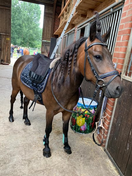 Da unsere Töchter zu groß geworden sind, trennen wir uns schweren Herzens von Moritz. Moritz ist brav unter dem Sattel. Er kann mit und ohne Ausbinder geritten werden. Auch geht er gerne mit ins Gelände. Wir suchen für ihn ein liebevolles zu Hause, wo er auf Dauer bleiben darf. Moritz ist kein reines Anfängerpony, da anfangs noch mal „ganz Pony“ gerne austestet ( aber nie böse).