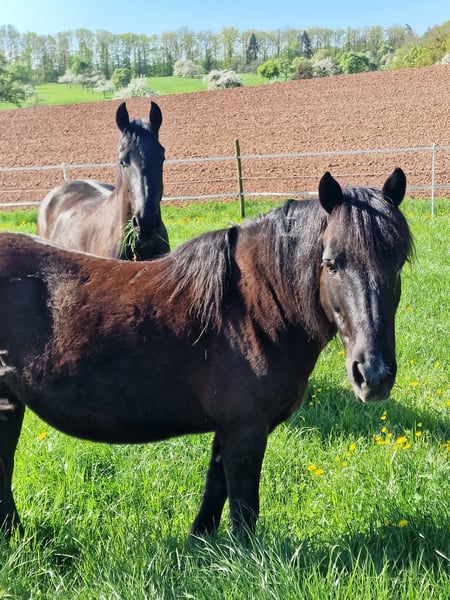 Hallo, schön dass sie sich für unser Pony interessieren. Rasse : Mix aus Dartmoor und Island Pony steht in Robusthaltung in großer gemischten Herde w/s / Offenstall - Herdenhaltung mit 24/7 Weidegang ABSOLUT herdenverträglich und eher rangniedrig. Schweren Herzens haben wir uns dazu entschieden unser Pony abzugeben. Da ich keine ( Art) -Hippolini-Reiten mehr anbiete und sie für meine eigenen ,,kleinen Kinder,, nur schwer alleine zu reiten ist, suchen wir für sie ein neues Zuhause wo man ihren Bedürfnissen gerecht wird. Sie lässt sich von meinen Kindern anstandslos putzen, gibt brav und zuverlässig Hufe. Sie ist ein absolut liebes, braves und anständiges Pony beim Verladen und beim Hufschmied. Sie wird regelmäßig geimpft, geht regelmäßig zum Zahnarzt ( zwei Zähne fehlen ihr/dadurch KEINE Beeinträchtigung beim Fressen) und hat KEINE REHE. Sie liebt Geländeausritte und macht fleißig und aufmerksam Bodenarbeit mit. Für Anfänger ist sie jedoch zum Reiten lernen, nicht geeignet. Sie benötigt einen Reiter der ihr klare Hilfen geben kann und sich klar und deutlich durchsetzen kann. Sie mag keine ständig wechselnden Reiter, ich wünsche mir für sie einen Reiter der Spaß und Freude an Bodenarbeit und Freizeitreiten, hauptsächlich ins Gelände hat. Ob sie jemals vor der Kutsche stand wissen wir nicht, bei uns wurde sie nicht gefahren. Als Handpferd für ein beispielsweise Mutter - Kind - Team auch denkbar, ebenso für für Zucht oder Beistellpony denkbar. Vielleicht sucht ja jemand genau so ein tolles Pony.... Preisverhandlungen möchte ich im Vorfeld nicht tätigen und werden ignoriert, darüber möchte ich mich gerne unterhalten, wenn ein ernsthaftes Interesse besteht und ich sehe wo sie hinkommen würde und ob die Chemie zwischen neuem Besitzer und Pferd stimmt .. (Platz vor Preis)
