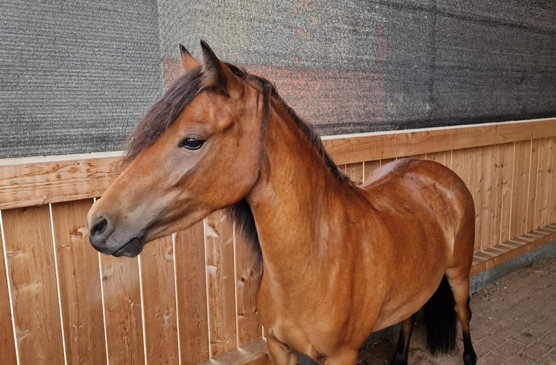 Tolle, vielversprechende 3 jährige Dartmoor x Welsh Pony Stute Sportpony für Springen, Dressur, Fahren Diese wunderschöne junge Stute, geboren am 01.05.2022, sucht ihr fördernes Zuhause. Cookie ist eine 3 Jahre junge, unverbrauchte Stute mit tollen Gängen, die am Anfang ihrer Ausbildung steht. Sie ist neugierig, motiviert und lern sehr schnell. Wir sehen sie bei einem ambitionierten Reiter/Fahrer im Reit- oder Fahrsport, aber auch als künftiges Kinderpony. Sie kennt bereits Sattel/Pad, Longiergurt und Trense, sowie das Reitergewicht, was sie alles souverän gemeistert hat. Im Gelände geht sie als Handpferd entspannt mit und ob longieren, Bodenarbeit oder Gelassenheitstraining, mit Cookie hat man eine Stute, die mit ihrer Lernbereitschaft Freude bereitet. Ihr derzeitiges Stockmaß beträgt 117 cm, welches sich allerdings noch ändern wird, da sie sich noch im Wachstum befindet. Wir schätzen, dass sie 120cm+ wird. Cookie kennt den Hufschmied und den Tierarzt und geht mit ihren drei Jahren in den Pferdehänger, als hätte sie nie etwas anderes gemacht. Auch Wasser ist für sie kein Thema. Sie ist herdenverträglich, kennt Rinder, Ziegen, Hunde und viele andere Hoftiere, sowie Landmaschinen und Co. Ihre Eltern (Papa Dartmoor, Mama Welsh) und Geschwister sind zuverlässige Kinder- und Sportponys, welche zudem auch im Fahrsport laufen. Weitere Fotos und Videos können wir selbstverständlich sehr gerne senden. Zur weiteren Ausbildung ist Cookie in einem Stall bei Lathen, in welchem sie auch gerne persönlich kennengelernt werden kann. Der Preis für Cookie ist vor Ort in einem angemessenen Rahmen verhandelbar. Mit weiterer Ausbildung werden wir auch den Verkaufspreis anpassen müssen. Wir wünschen uns für Cookie das passende und liebevolle Zuhause, das sie definitiv verdient hat und freuen uns auf Ihre Nachricht.
