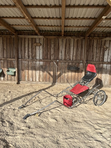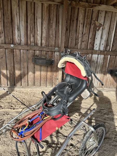 Draft Pony with Sulky and Equipment for Sale We are offering an 8-year-old, small German pony mare (Dartmoor x Classic Pony) from a good breeding line, approximately 118 cm at the withers. Breeder: Bavarian Breeding Association for Small Horses and Special Breeds e.V. The price includes a Hülsmann sulky with a bag (stainless steel, durable) and equipment from Sieltec + Marathon harness made of leather. Sale also possible without the equipment. Further accessories available on request (e.g., hoof boots, ...). She is experienced driving in front of the sulky and equally comfortable paired in a team with a marathon cart. She is lively, strong-willed, quickly recovers from startle moments, sensitive, brave, and of medium ranking. She is intelligent and always bonds well with her handler, adapts easily to her herd size, and fits into various environments. She simply makes riding fun. Her affectionate nature makes her easy to like. Moon is on pasture year-round and only comes into her stable, a sand paddock, at night. She has also spent nights in a box, which is no problem for her. She is used to being outdoors during the day for at least 8 hours. We have never encountered laminitis. She is very eager to move and needs access to pasture. She has never been seriously ill under my care. She is a healthy animal, as far as I can tell. Her hooves are top-quality—firm yet elastic. We ride barefoot, and she has no cracks or splinters. Her coat is shiny, healthy, and she requires very little, high-quality feed. I feed her naturally; she has never seen conventional feed. She is regularly checked by my hoof care specialist and our equine dentist. Her teeth are excellent. She is an absolute adult pony. I can easily imagine her excelling in endurance riding, as she is very enduring and eager to move. Training based on Alexandra König, Saliho School. I longe her free in the riding arena without many aids. Liberty work with her is very enjoyable. She is definitely not a children's pony! Of course, she loves children—if they don't sit on her ;). She is fearless and has no issues with trucks, tractors, or dogs. On the contrary, she is very curious and sticks her nose into every open stroller. The only thing she absolutely cannot tolerate is haylage. High-quality, homemade haylage is still not tolerated! If you follow this advice, you won’t need a vet. However, feeding haylage regularly for about four weeks will likely result in frequent vet visits. She can stay at her current location. It is a beautiful open stable with very diverse riding terrain right outside the door. It is a self-sufficient stable with very low costs by today’s standards. I am a animal communicator and animal healer, and I am selling her due to emigrating. If it were possible, I would take her with me. She is my absolute heart pony, and I know I can let her go because a loving and experienced person will find her. - Very experienced driving in front of the sulky - Double harnessed in a team - Healthy, in my opinion - Easy to handle - Interesting for breeding - Suitable for sport - An adult pony - Comes with ownership certificate, pedigree, and equine passport Please note: She absolutely does not want to be ridden! Not even a “quick ride”! She has not been backed. Also, she cannot tolerate haylage! There is much more to tell, but that would go beyond the scope of this ad. A phone call can answer all questions. More pictures and videos will only be sent after a phone conversation. Serious inquiries only, please! Price negotiable