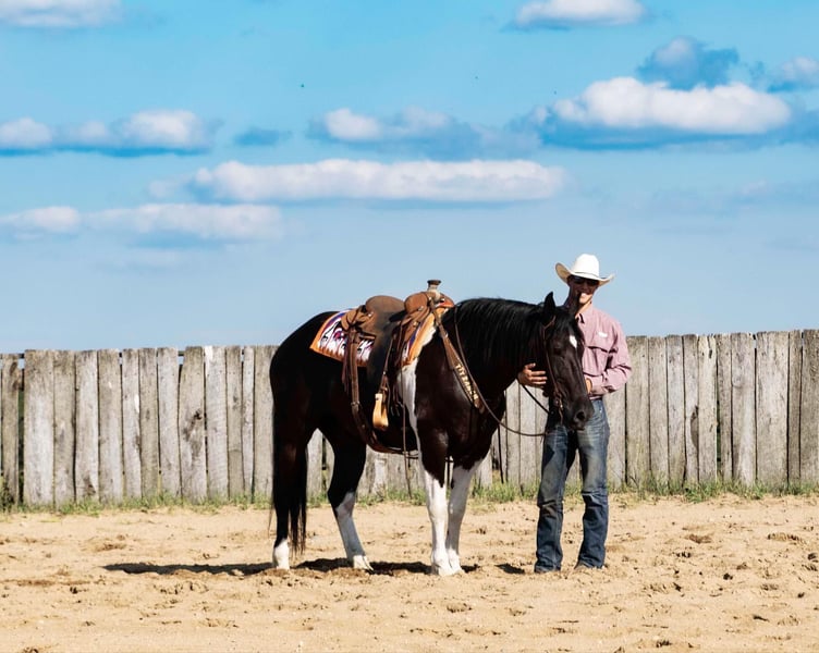 ONLINE AUCTION Place your bids at www.PlatinumEquineAuction.com Starting Bid $3500 Auction ends September 15th, 2024 Need a new saddle? Check out White Rock Saddles on our website or Facebook! Big Joe, a Spotted Draft and Quarter Horse crossbred gelding, that exemplifies the best of both breeds, combining strength, endurance, and a gentle temperament. Standing an impressive 16 hands tall, he is 10 years old, he is a powerful presence, yet his calm demeanor makes him an ideal companion for various equestrian activities. His size and build reflect the draft horse heritage, contributing to his ability to handle heavy workloads and rugged terrain with ease. Being used on the ranch, Big Joe has developed a solid foundation in working cattle and other ranching tasks. His experience on the ranch has also made him a reliable trail horse, particularly suited to mountain riding where sure-footedness and stamina are essential. His ability to navigate challenging landscapes has been proven on numerous occasions, showcasing his agility and confidence in diverse environments. In addition to his ranch work, Big Joe is a skilled performer in the arena. He can lope collected circles, demonstrating a balanced and controlled movement that speaks to his training and athletic ability. This versatility extends to his participation in overnight pack trips, where his reliability and steadiness become invaluable assets. Whether working or recreating, Big Joe remains composed and cooperative, making him a favorite among riders. Moreover, Big Joe’s manners and ease of handling make him a pleasure to care for. He loads easily into trailers, bathes without fuss, and is comfortable with having his feet handled, reflecting his well-rounded training. On the ground, he is the epitome of a gentleman, displaying a calm and respectful attitude that endears him to those who work with him. His combination of physical prowess, training, and temperament make Big Joe an exceptional horse for both work and leisure. Located in Nevis, Minnesota. Contact Tripe T Livestock Colton 218-770-8986 with any questions. ONLINE AUCTION Place your bids at www.PlatinumEquineAuction.com Starting Bid $3500 Auction ends September 15th, 2024 Need a new saddle? Check out White Rock Saddles on our website or Facebook!