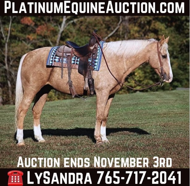 ONLINE AUCTION Place your bids at www.PlatinumEquineAuction.com Starting Bid $3500 Auction ends November 3rd, 2024 Need a new saddle? Check out White Rock Saddles on our website or Facebook! If Barbie has a dream horse this would be him! Able is a well built gelding standing around 15.3hh, he is an 11 year old, dark dappled palomino with white socks. We got Able from the family who raised him. He has been trail ridden in multiple states. He will cross creeks, ditches, logs and navigate rough rocky areas. He is safe riding in traffic. Able has been ridden by older folks and kids as well, just cruising along slow and easy down the trails is his prefered speed. We have used him around the ranch to check cows and sort some on him as well. He is a confident horse on the trails and will lead the crew, head out alone with no issues! He has been exposed to all kinds of wildlife such as deer or turkey or other animals like cows or dogs and will go anywhere that he is asked too. He has been rode many miles in the mountains of Eastern Kentucky and encountered every obstacle possible on the trail. He will go up or down even the steepest slopes, across deep creeks, over downed trees, and over all types of rough terrain while still being sure footed. Able is not cinchy, cold backed, does not crib or weave. Here is one horse that will get you noticed anywhere that you go!!! Feel free to call Lucky 13 Equine Lysandra 765-717-2041 with any questions or to make a buy it now offer. Located in Brodhead, KY. ONLINE AUCTION Place your bids at www.PlatinumEquineAuction.com Starting Bid $3500 Auction ends November 3rd, 2024 Need a new saddle? Check out White Rock Saddles on our website or Facebook!