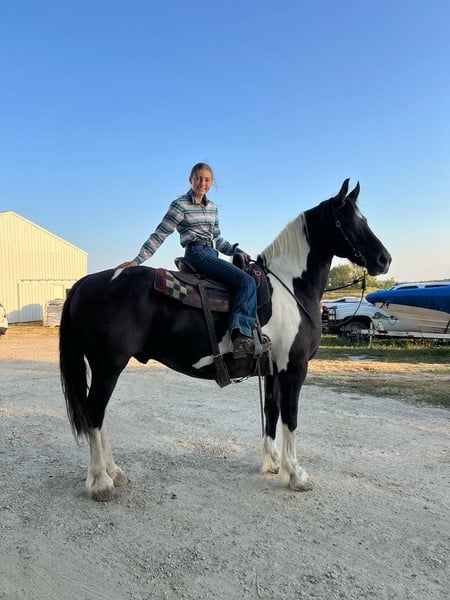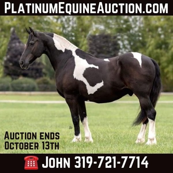 ONLINE AUCTION Place your bids at www.PlatinumEquineAuction.com Starting Bid $3500 Auction ends October 13th, 2024 Need a new saddle? Check out White Rock Saddles on our website or Facebook! Apollo’s size and build, at 16.2 hands and 1400 pounds, make him a solid and substantial horse, perfect for a wide range of activities while being gentle enough for even the youngest or most inexperienced riders. Apollo sounds like a dream horse—versatile, reliable, and steady! His ability to handle both English and Western disciplines, along with his experience in dressage, trail riding, and even parades, highlights his incredible adaptability. A Friesian Cross often brings the best of both worlds: the beauty, grace, and athleticism of the Friesian breed mixed with the resilience of other stock. His gentle temperament and calmness in any environment, even around loud and chaotic situations like parades or rodeos, would make him an ideal horse for a variety of riders, especially those who want a trustworthy, all-around family horse. The fact that he’s been used in lessons for children and teenagers and can confidently carry anyone from a child to a grandmother speaks volumes about his dependable and quiet nature. It’s also impressive that he’s traffic-safe and unfazed by heavy machinery or even freight trains! His low-maintenance care routine makes him a practical and enjoyable partner for just about anyone, regardless of their level of experience. Located in Lisbon, IA. Contact John McPhail 319-721-7714. ONLINE AUCTION Place your bids at www.PlatinumEquineAuction.com Starting Bid $3500 Auction ends October 13th, 2024 Need a new saddle? Check out White Rock Saddles on our website or Facebook!