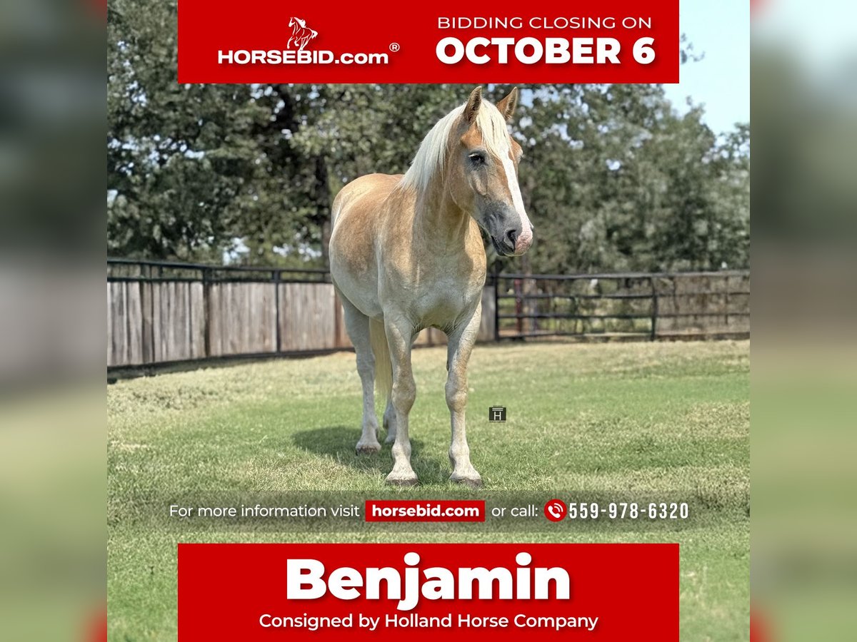 🍂 𝓐𝓾𝓽𝓾𝓶𝓷 𝑨𝑳𝑳 𝑺𝑻𝑨𝑹 𝑳𝑰𝑵𝑬𝑼𝑷 🍂 Happening now thru MONDAY | OCTOBER 6th - Available EXCLUSIVELY on HorseBid's website! For more details and to register visit: www.Horsebid.com CONSIGNOR CONTACT: Holland Horse Company 559-978-6320 LOCATION: Jacksboro, TX BREED: Draft Cross REGISTERED: No COLOR: Sorrel HEIGHT: 15.1 AGE: 3 GENDER: Gelding Benjamin Buttons, as we call him, is a young horse with an old soul. Benjamin stands 15.1 hands, weighs a solid 1250 and wears a size 3 shoe. He is safe, sound and a very handy crossbred gelding. We have used Benjamin out on the ranch, in the corrals, and in the arena roping, sorting and doctoring cattle. He will know a days work. Benjamin is started under English tack and fences and took to it instantly and easily. He is broke to drive both a cart and farm equipment. He is unphased by traffic and commotion. Benjamin is the perfect cross of athleticism and draft as well as woah and go. We feel he could fit most riders of all levels. Benjamin is friendly and easy to be around. He has good ground manners. He gets along well with others. He is the same horse every time you saddle him up. He’s super fun to ride and will try his best at anything you ask of him. Benjamin is sound, straight and clean legged. FMI call/text Chanel with Holland Horse Company 559-978-6320. We are happy to schedule a PPE, arrange a test ride or help find shipping nationwide!