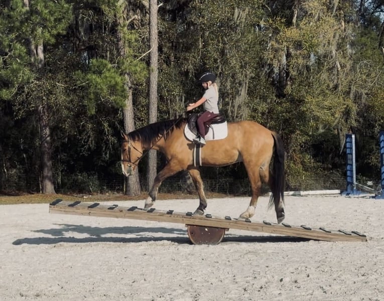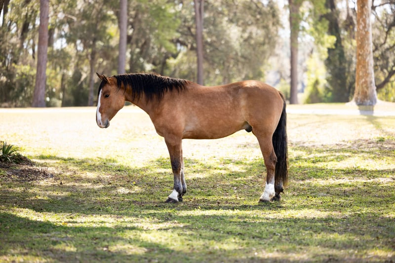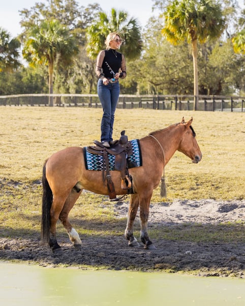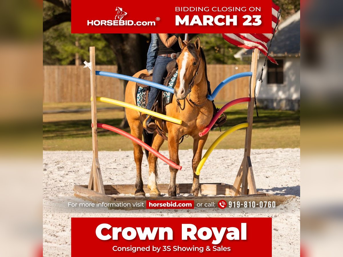 ⚜️𝓽𝓱𝓮 𝐆𝐎𝐋𝐃 𝓢𝓮𝓵𝓮𝓬𝓽⚜️ Happening now thru MONDAY | MARCH 23rd - Available EXCLUSIVELY on HorseBid's website! For more details and to register visit: www.Horsebid.com CONSIGNOR CONTACT: 3S Showing & Sales 919-810-0760 LOCATION: Ocala, FL BREED: Draft cross REGISTERED: No REGISTERED NAME: Crown Royal COLOR: Dun HEIGHT: 15.3 AGE: 4 GENDER: Gelding Crown Royal is a 4 year old, 15.3 HH draft cross with the kind of mind and disposition families dream about. He is by a Gurrola bred Quarter Horse stud and out of a Morgan × Belgian mare, giving him the best qualities of each breed. The Quarter Horse contributes trainability and athleticism, the Morgan adds heart and versatility, and the Belgian brings strength, bone, and that naturally calm draft disposition. The result is a horse with the perfect blend of brains, comfort, and reliability. He is a striking gelding with a gorgeous dun dorsal stripe down his back and the kindest expression to match his personality. From the moment he was born, Crown Royal was surrounded by children — truly redefining the phrase “born broke.” He grew up with kids climbing on him, brushing him, and learning around him, and because of that upbringing, his patience and kindness shine through in everything he does. He genuinely enjoys people and especially has a soft spot for kids and timid riders. He is the type of horse that builds confidence rather than taking it away — the kind families search for but rarely find. I had the pleasure of offering his full brother, Captain, last year, and this family continues to impress in every way. Crown Royal is the last full brother that will ever be available, making him a rare opportunity to own one from this exceptional cross. Crown Royal has been extensively exposed to “real world” situations and is a true all-around horse. He has been ridden on large cross country course where he confidently jumped logs, ditches, banks and went through water. He has also been ridden double, triple, and even backwards. He has completed obstacle courses including teeter-totter bridges, pool noodles, traffic obstacles, and more. He has been around cattle, helped gather longhorns, and has been ridden comfortably through town, around loud semi-trucks, heavy traffic, construction noise, and busy environments. We’ve even ridden him to coffee shops and local food stands — and yes, we have even gone fishing on him. Under saddle, Crown Royal rides both Western and English and has done dressage work. He moves nicely off the leg, collects, and easily transitions into an extended trot or canter. He has exceptionally smooth gaits with a fantastic jog, an easy rhythmic trot, and a soft, comfortable canter that is perfect for beginner riders — especially kids learning to canter. For riders who need a little extra help mounting, Crown Royal is trained to come to the mounting block and will also lay down on cue. He is naturally more whoa than go, but he is not lazy-he is just quiet, steady, and responsive. Crown Royal truly is a certified all-around gelding. Whether you want to enjoy hunters, lower-level jumping, dressage, fox hunting, ranch riding, trail riding, or simply have a safe and enjoyable pleasure mount, his versatility and ultra safe mentality sets him apart. With his mind, bravery, and extensive exposure, he is the ultimate beginner friendly horse that I trust completely. On the ground, he is just as easy as he is under saddle. He loads, ties, and cross ties quietly, stands politely for grooming, and is excellent to handle. He is an easy keeper, currently wears front shoes only, and turns out happily in a mixed herd. Leave him in the stall for a few days and pull him out — you will have the exact same horse. Crown Royal has been on overnight camping trips where he confidently crossed deep water, climbed rocky hills, and explored miles of trails from Wyoming to Florida, always carrying our little riders safely along the way. He is incredibly sure footed, calm, and dependable wherever the trail leads. And in true family horse fashion — one of our little riders has even hopped on him bareback in the dark to go meet the pizza delivery driver. 🍕 That’s just the kind of horse he is. ✨ Ladies — enjoy your English ride, then throw your husband on him in a Western saddle and head down the trail. He truly does it all. And yes… he is a real-life couch to sit on. ✨ Crown Royal easily falls into our “elite” category of horses. If you’re searching for one of the safest geldings you can find — from the tiniest riders to the “golden aged” riders — Crown Royal would be my first choice. UTD on Coggins, vaccines, and health certificate. Trials at our farm are welcome, and we can arrange shipping anywhere with our in-house shipper, making the buying process easy and seamless for out-of-state buyers. Crown Royal truly checks every box — and then some.