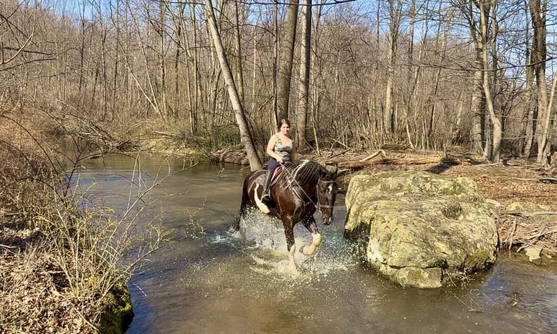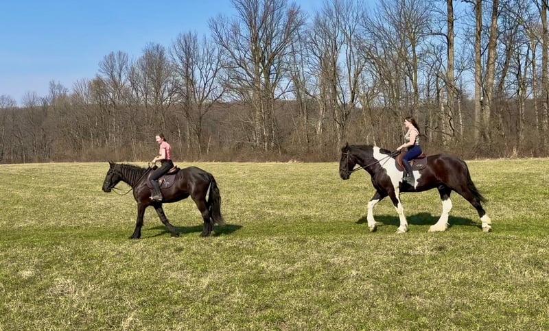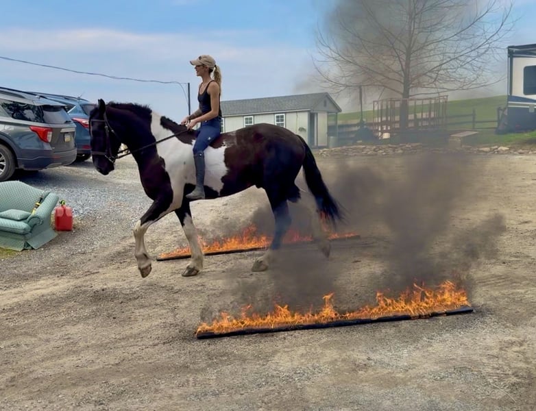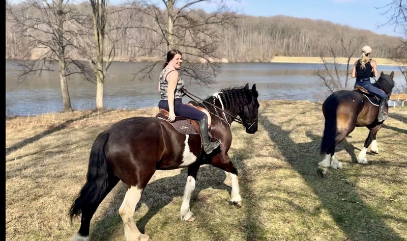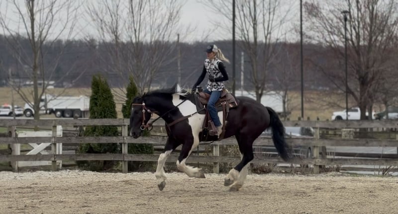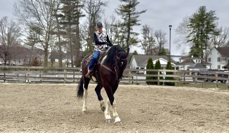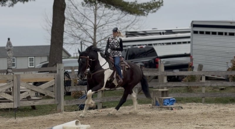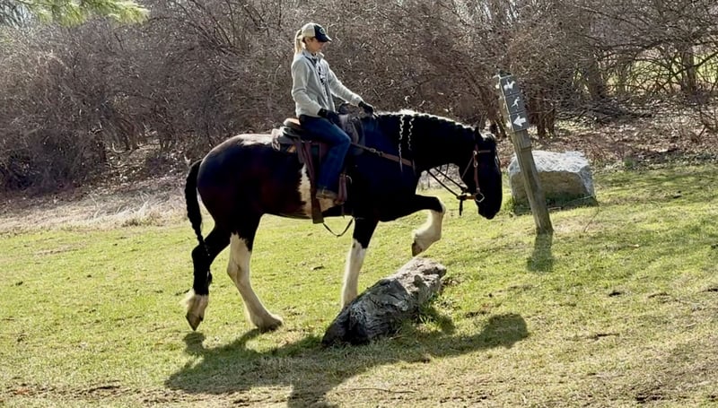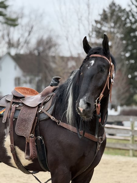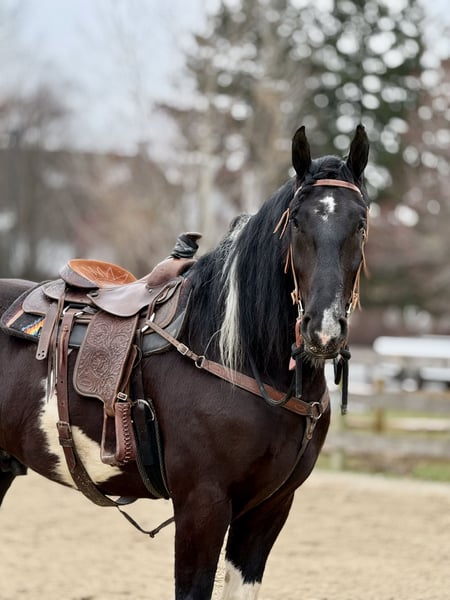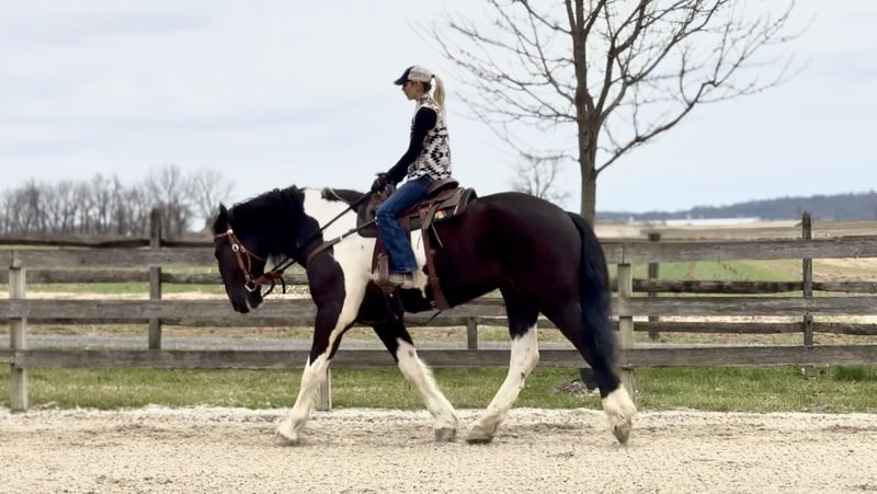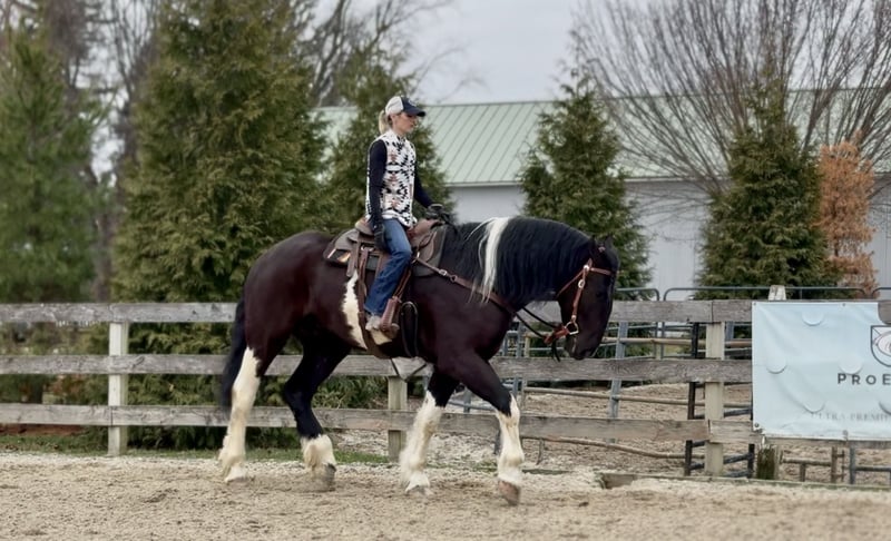 🌟𝑨𝒑𝒓𝒊𝒍 𝐀𝐋𝐋 𝐒𝐓𝐀𝐑 𝐋𝐈𝐍𝐄𝐔𝐏🌟 Happening now thru MONDAY | APRIL 6th - Available EXCLUSIVELY on HorseBid's website! For more details and to register visit: www.Horsebid.com CONSIGNOR CONTACT: CM Farms 717-875-2061 LOCATION: Gap, PA BREED: Spotted Draft/Friesianx REGISTERED: No COLOR: B/W paint HEIGHT: 17.2 AGE: 4 GENDER: Gelding Meet ✨ Dallas ✨ This jaw-dropping gelding is a 4-year-old Friesian/Spotted Draft cross standing an impressive 17.2 hands high. Dallas is the kind that instantly grabs your attention—the kind people stop scrolling for. His bold black and white paint coloring, combined with his big, powerful build, uphill frame, strong neck, and pretty, refined head, make him as eye-catching as they come. Horses built and colored like this are few and far between, and it’s what sets him apart from the rest. But Dallas isn’t just a pretty face—he backs it up with an exceptional mind to match. He is safe, sane, smart, kind, and truly suitable for just about anyone. 💫 Under saddle, Dallas is just as exceptional as he is beautiful. He has smooth, comfortable gaits that make him a pleasure to ride all day long. His walk is relaxed and steady, his trot is easy to sit, and his canter is soft, balanced, and simple to ride. What really sets him apart is how he feels—despite his big frame, he rides light, soft, and almost floaty, not heavy like you might expect. He is naturally balanced and carries himself with ease, making him incredibly user-friendly and enjoyable for riders of all levels. He’s the same dependable horse every time you swing a leg over him—level-headed, forgiving, and always willing. Dallas has been ridden both inside the arena and out, and he handles new environments with confidence and ease. 🔥 He has also been lightly started over fences and is proving to be a natural. Given his size and age, we’ve taken our time with him, but he shows all the right qualities—cute knees, natural scope, and a willing, quiet mind. He stays relaxed and confident, making him a very fun and promising prospect for someone looking to take him further. Out on the trail, Dallas is truly in a league of his own—the kind everyone is searching for but rarely finds. You can drop the reins and simply enjoy the ride; he’ll take care of the rest like an old, seasoned horse with years of experience. He will go absolutely anywhere you point him without hesitation—no forcing, no second-guessing, just a willing partner every step of the way. He’s not too fast and not too slow—just that perfect, steady pace that makes for a fun, relaxing ride every time. And if there’s water involved, even better—Dallas absolutely loves it. Lakes, rivers, streams… if he spots a puddle, he’ll happily make his way over just to splash through it. What horse does that?! 🌊 In the barn, Dallas’s personality is just as special as his ride. He’s got a goofy, lovable nature and genuinely wants to be your buddy. He’s the type that will be right in your pocket every chance he gets—more like a puppy dog than a horse. He loves attention, enjoys being around people, and makes every interaction enjoyable. He’ll meet you at the gate, stand quietly for grooming and tacking, and is an easy, pleasant horse to have around every day. Horses like Dallas don’t come around often—he’s got the size, the looks, the brain, and the kind of personality that people spend years searching for. It’s rare to find one this big that rides this light, thinks this well, and takes care of his rider the way he does. Whether you want to trail ride, enjoy the arena, or continue bringing him along over fences, he fits the bill in every way. He’s the kind you’ll look forward to riding every single day—and the kind you won’t replace once he’s gone. We know whoever ends up with Dallas is getting something truly special. 💛 UTD on Shots, Coggins, Farrier, Dentist and Deworming.
