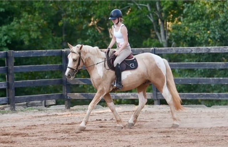 ⚜️𝐓𝐇𝐄 𝐅𝐀𝐋𝐋 𝐇𝐄𝐑𝐈𝐓𝐀𝐆𝐄 𝐂𝐋𝐀𝐒𝐒𝐈𝐂⚜️ Happening now thru MONDAY | NOVEMBER 3rd - Available EXCLUSIVELY on HorseBid's website! For more details and to register visit: www.Horsebid.com CONSIGNOR CONTACT: Carolina Sport Horses 704.249.8500 LOCATION: Clover SC BREED: Draft X REGISTERED: No REGISTERED NAME: Joplin COLOR: Palomino Paint HEIGHT: 14.2 AGE: 5 GENDER: Gelding Joplin is a 5 year old Quarter Horse x Halflinger standing 14.2 hands high. "Wow!" is what everyone thinks when they meet Joplin. He is a gentle, loving, showstopper of a horse. He has the education, the experience, and most importantly, the factor of safety. Climb on and go on any adventure and know you have a solid, sensible horse beneath you. The sky is the limit when you partner with Joplin. He knows all of the moves in the ring, is as sure footed as they come on the trails, and is just simply fun to ride and be around. He wants to be everyones best friend, and will be a trustworthy partner for years and years to come, no matter what adventures you want to go on. In the ring, Joplin is like no other draft cross you've seen. He has every button one could want, while still being gentle enough for the kids to take their weekly lessons on. He has the most incredible canter, with near perfect transitions. He is well on his way to performing pirouettes, knows all the lateral work, and even has a lead change. There are few horses with the range that Joplin has. He can complete a dressage test, jump around the cross country field, teach the kids lessons, and has even been used for rounding up cattle! If you can dream it up, you can do it with Joplin. We see so many different horses every year, but there are very few horses that truly can pick up any discipline and do with the ease and confidence that Joplin does. On the trails, Joplin is the number one trail master. Point him at anything, and he will go. He is brave, he is sure footed, and he is safe. There is no water too deep, hill too steep, or task too daunting. If trail blazing isn't your thing, he is equally capable and happy doing a hack around the farm with friends after a lesson, or going on a sunset stroll. The kids love to take him out into the woods after their ride and pop over the logs and coupes and play Saddle Club. On the cross country field, Joplin is brave and easy. He has the scope for any fence, and is as brave as they come. In the barn, Joplin is the most loving horse around. He would rather live in your house than the barn, and is the first to the fence to come in and get attention. He stands to be bathed, clipped, tacked, and groomed. He is used to the kids climbing all around him, and he is always polite and gentle. Joplin lives out, weather permitting, and is a good boy when stalled. He goes out in a mixed herd and gets along well with everyone. He has no vices, quirks, or funny business, and is an easy keeper that's a pleasure to have in the barn. Joplin is the type of horse that comes around once in a blue moon. There is not another horse like him, and I'm not sure we will ever be able to find anything even close. From his looks, to his personality, the way he rides, and his brain, Joplon is absolutely one of a kind. Joplin is available to be seen at our farm in Clover, SC by appointment.