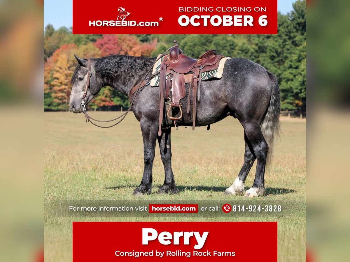 🍂 𝓐𝓾𝓽𝓾𝓶𝓷 𝑨𝑳𝑳 𝑺𝑻𝑨𝑹 𝑳𝑰𝑵𝑬𝑼𝑷 🍂 Happening now thru MONDAY | OCTOBER 6th - Available EXCLUSIVELY on HorseBid's website! For more details and to register visit: www.Horsebid.com CONSIGNOR CONTACT: Rolling Rock Farms 814-924-3828 LOCATION: Miola PA BREED: Draft cross REGISTERED: No COLOR: Grey HEIGHT: 15.3 AGE: 4 GENDER: Gelding Perry is a gorgeous 4 year old dapple grey draft cross gelding standing a solid 15.3 hands. His unique coloring and eye-catching presence turn heads everywhere he goes, and his quiet, confident demeanor makes him a joy to be around. Even though he is still young, Perry carries himself like a seasoned veteran. He rides with the kind of maturity and steadiness you normally only find in older horses. Under saddle, Perry is soft in the bridle, willing to learn, and extremely broke. He neck reins easily and stays light in the bridle, trotting around with an easy headset. His lope is smooth and balanced, and he catches both leads easily making him comfortable for long rides in the arena or out on the trail. Whether you prefer to ride in a saddle or bareback, Perry is equally steady and sure footed. This gelding has also been exposed to plenty of real world experiences that show off his versatility. He has been roped off of and will confidently drag a calf. He has carried the American flag with confidence. Out on the trail, Perry is the kind of horse you can count on. he moves through water, brush, and all kinds of rough terrain without a second thought. He is not spooky and stays level headed in new places and around new sights and sounds. Around the barn and in the pasture, Perry is easy to care for and easy to get along with. He does well whether kept in a stall or turned out in the pasture, and he is lower in the pecking order, making him a good fit in a mixed herd. He stands quietly to be saddled, brushed, and bathed, and stands good for the farrier. He currently wears four shoes and is kept up to date on his care. He sells with a current negative Coggins and a rabies vaccination, so he is ready to head straight to his new home. If you’re looking for a young horse with the mind of an experienced one, one that is handsome, broke, and already proven in and out of the arena, Perry is the complete package. For more information or to schedule a time to meet him, please contact Ethan at (814) 924-3828.