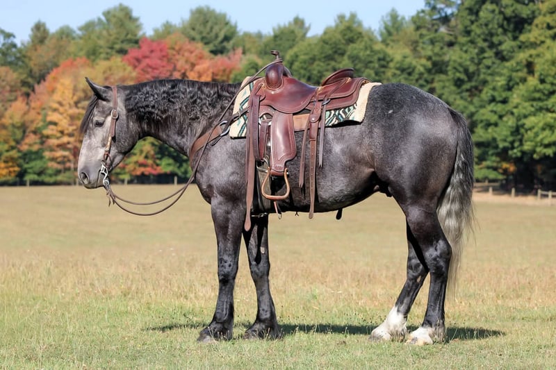 🍂 𝓐𝓾𝓽𝓾𝓶𝓷 𝑨𝑳𝑳 𝑺𝑻𝑨𝑹 𝑳𝑰𝑵𝑬𝑼𝑷 🍂 Happening now thru MONDAY | OCTOBER 6th - Available EXCLUSIVELY on HorseBid's website! For more details and to register visit: www.Horsebid.com CONSIGNOR CONTACT: Rolling Rock Farms 814-924-3828 LOCATION: Miola PA BREED: Draft cross REGISTERED: No COLOR: Grey HEIGHT: 15.3 AGE: 4 GENDER: Gelding Perry is a gorgeous 4 year old dapple grey draft cross gelding standing a solid 15.3 hands. His unique coloring and eye-catching presence turn heads everywhere he goes, and his quiet, confident demeanor makes him a joy to be around. Even though he is still young, Perry carries himself like a seasoned veteran. He rides with the kind of maturity and steadiness you normally only find in older horses. Under saddle, Perry is soft in the bridle, willing to learn, and extremely broke. He neck reins easily and stays light in the bridle, trotting around with an easy headset. His lope is smooth and balanced, and he catches both leads easily making him comfortable for long rides in the arena or out on the trail. Whether you prefer to ride in a saddle or bareback, Perry is equally steady and sure footed. This gelding has also been exposed to plenty of real world experiences that show off his versatility. He has been roped off of and will confidently drag a calf. He has carried the American flag with confidence. Out on the trail, Perry is the kind of horse you can count on. he moves through water, brush, and all kinds of rough terrain without a second thought. He is not spooky and stays level headed in new places and around new sights and sounds. Around the barn and in the pasture, Perry is easy to care for and easy to get along with. He does well whether kept in a stall or turned out in the pasture, and he is lower in the pecking order, making him a good fit in a mixed herd. He stands quietly to be saddled, brushed, and bathed, and stands good for the farrier. He currently wears four shoes and is kept up to date on his care. He sells with a current negative Coggins and a rabies vaccination, so he is ready to head straight to his new home. If you’re looking for a young horse with the mind of an experienced one, one that is handsome, broke, and already proven in and out of the arena, Perry is the complete package. For more information or to schedule a time to meet him, please contact Ethan at (814) 924-3828.