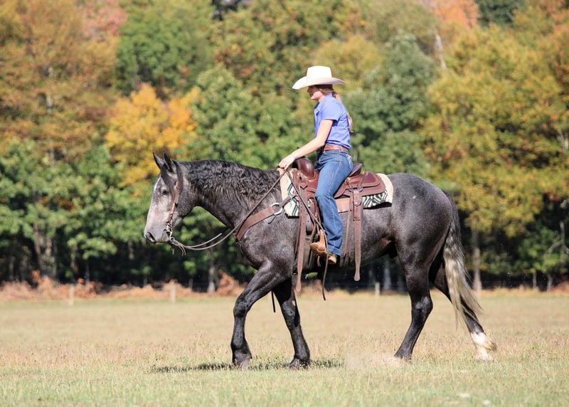 🍂 𝓐𝓾𝓽𝓾𝓶𝓷 𝑨𝑳𝑳 𝑺𝑻𝑨𝑹 𝑳𝑰𝑵𝑬𝑼𝑷 🍂 Happening now thru MONDAY | OCTOBER 6th - Available EXCLUSIVELY on HorseBid's website! For more details and to register visit: www.Horsebid.com CONSIGNOR CONTACT: Rolling Rock Farms 814-924-3828 LOCATION: Miola PA BREED: Draft cross REGISTERED: No COLOR: Grey HEIGHT: 15.3 AGE: 4 GENDER: Gelding Perry is a gorgeous 4 year old dapple grey draft cross gelding standing a solid 15.3 hands. His unique coloring and eye-catching presence turn heads everywhere he goes, and his quiet, confident demeanor makes him a joy to be around. Even though he is still young, Perry carries himself like a seasoned veteran. He rides with the kind of maturity and steadiness you normally only find in older horses. Under saddle, Perry is soft in the bridle, willing to learn, and extremely broke. He neck reins easily and stays light in the bridle, trotting around with an easy headset. His lope is smooth and balanced, and he catches both leads easily making him comfortable for long rides in the arena or out on the trail. Whether you prefer to ride in a saddle or bareback, Perry is equally steady and sure footed. This gelding has also been exposed to plenty of real world experiences that show off his versatility. He has been roped off of and will confidently drag a calf. He has carried the American flag with confidence. Out on the trail, Perry is the kind of horse you can count on. he moves through water, brush, and all kinds of rough terrain without a second thought. He is not spooky and stays level headed in new places and around new sights and sounds. Around the barn and in the pasture, Perry is easy to care for and easy to get along with. He does well whether kept in a stall or turned out in the pasture, and he is lower in the pecking order, making him a good fit in a mixed herd. He stands quietly to be saddled, brushed, and bathed, and stands good for the farrier. He currently wears four shoes and is kept up to date on his care. He sells with a current negative Coggins and a rabies vaccination, so he is ready to head straight to his new home. If you’re looking for a young horse with the mind of an experienced one, one that is handsome, broke, and already proven in and out of the arena, Perry is the complete package. For more information or to schedule a time to meet him, please contact Ethan at (814) 924-3828.