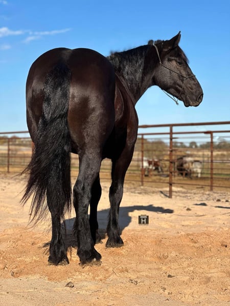 ONLINE AUCTION Place your bids at www.PlatinumEquineAuction.com Starting Bid $3500 Auction ends January 19th, 2025 Need a new saddle? Check out White Rock Saddles on our website or Facebook! Monster is a 4 year old draft cross gelding standing 15.3 hands. He is a seasoned veteran outside, on the trails, on the ranch and down the roads. He rides English and is a super fancy mover! Monster also drives and has been used to pull a cart and farm equipment. We’ve exposed him to everything we can think of and he takes to it all easily. He’s seen the obstacles, rough terrain, freeways, bouncing balls, indoor arenas, outdoor arenas, banners, etc. There isn’t much Monster hasn’t seen. He is very broke and will collect up, neck rein, move off leg and has pretty circles. He is gentle, quiet, very easy to ride and doesn’t need to be rode every day to stay that way. He is safe and sound. I cannot say enough good things about this gelding. He is a favorite of mine. He has excellent ground manners and is a gentleman all the way around. FMI call/text Chanel at Holland Horse Company 559-978-6320. We can help arrange shipping nationwide. ONLINE AUCTION Place your bids at www.PlatinumEquineAuction.com Starting Bid $3500 Auction ends January 19th, 2025 Need a new saddle? Check out White Rock Saddles on our website or Facebook!