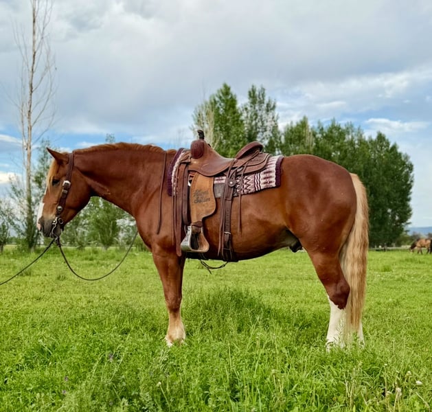 ⚜️𝐓𝐇𝐄 𝐅𝐀𝐋𝐋 𝐇𝐄𝐑𝐈𝐓𝐀𝐆𝐄 𝐂𝐋𝐀𝐒𝐒𝐈𝐂⚜️ Happening now thru MONDAY | NOVEMBER 3rd - Available EXCLUSIVELY on HorseBid's website! For more details and to register visit: www.Horsebid.com CONSIGNOR CONTACT: RMO Horses 801-361-6772 LOCATION: Heber City, UT BREED: Draft Cross REGISTERED: No COLOR: Sorrel HEIGHT: 15.3 AGE: 5 GENDER: Gelding Here’s one that checks every box! This nice, stout-made gelding is proven and steady on the mountain and trail — the kind you can depend on every single ride. He’s gentle and safe for any level of rider, yet talented enough to impress in the arena. He rides soft, knows his leads, stops, and turns easily, and stays quiet and responsive every time you saddle him. On the ground, he’s as kind as they come — easy to catch, handle, and be around, with excellent manners. Whether you want a family-friendly mount or a seasoned partner for the ranch or arena, this gelding brings brains, build, and a big heart. A true all-around horse ready to go in any direction!