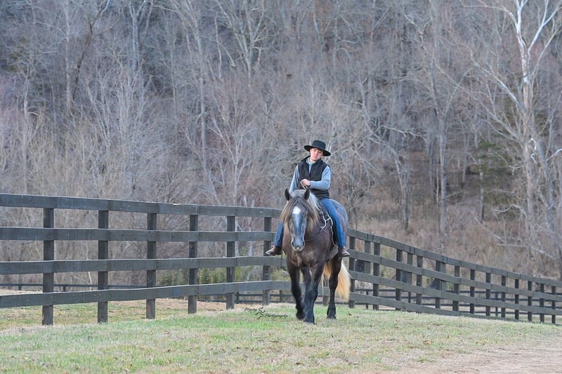"AVAILABLE ON ONLINE HORSE AUCTION AT www DOT PlatinumEquineAuction DOT com BIDDING OPEN NOW thru SUNDAY | APRIL 12TH! *Final price will be determined on auction site* CONSIGNOR CONTACT INFO: Edwin Raber 319-283-0616 LOCATION: Fairbank, IA Keystone is the definition of a gentle giant and is the perfect gentleman whether his rider is big or small. He is a 5 year old draft cross gelding that stands a solid 16.2h, weighing in at 1500 lbs, and wearing a #6 draft shoe. He is honest and genuine in his ride, taking care of an inexperienced or a young rider as they stroll down the trails. Keystone is a jack of all trades; he rides Western, English, bareback, bridleless, and even drives! You can expect him to be a seasoned trail or arena mount, even with time off, he picks things up right where you left off. He is a pleasure to be around on the ground, under saddle, or under harness. Keystone will go wherever he is pointed down the trails, where he easily crosses downed timber, walks quietly through the rivers, and handles rugged terrain with ease. He is accustomed to all wildlife as well, whether he comes across a flying pheasant in Iowa, or a speedy road runner in Arkansas; Keystone has seen it all! Whether you are out on the trails or in the arena, he stands patiently at a mounting block or will even stand next to a rock or log to be mounted. He is truly a horse that an entire family can enjoy, and is so versatile. He has a personality that everyone loves, as he enjoys all of the attention. He is personable with everyone and doesn't know a stranger. You will notice in his photos and video that he has a true double mane, falling thick and even on both sides of his neck! He is truly one of a kind. Keystone has put up with a lot from me as you will see in the video, always keeping a level head and the utmost patience. He stands quietly with side-by-sides doing donuts around him, and even entertains attention from a 7.5ft T-Rex on the ground and under saddle. He handles new things like a seasoned pro, and it's one of our favorite things about him. Keystone picks up his leads correctly on cue, lopes beautiful circles in a field or in the arena. He does everything that is asked of him without hesitation. Even with new riders on his back, he is always aiming to please. For a crossbred gelding, there isn't much that Keystone hasn't done, or hasn't been exposed to. He is extremely well rounded and versatile, making him a great fit for so many riders and families. All of our video was taken while on vacation in Arkansas, a brand-new place to him. Though it is not in the video, we want to emphasize how well he drives and how well he handles riding through the busy streets of our small town. Keystone is traffic safe, and handles a busy environment very well. He is not a stranger to trail obstacles; and enjoys all of the horseplay with the tarps, balls, and anything else the kids can think of. Keystone loads and hauls very well, he is a gentleman for the farrier and the veterinarian, bathes well, and stands quietly to be groomed and tacked up. He is used to being around farm equipment and all types of farm animals from small pets to poultry. He is easy to catch and happy whether he is stalled or turned out, and gets along well with others in a pasture setting. Radiographs or a pre-purchase exam can be arranged (at buyers expense). If you have any questions or would like to meet Keystone prior to the auction ending, please CALL Edwin at 319-283-0616.