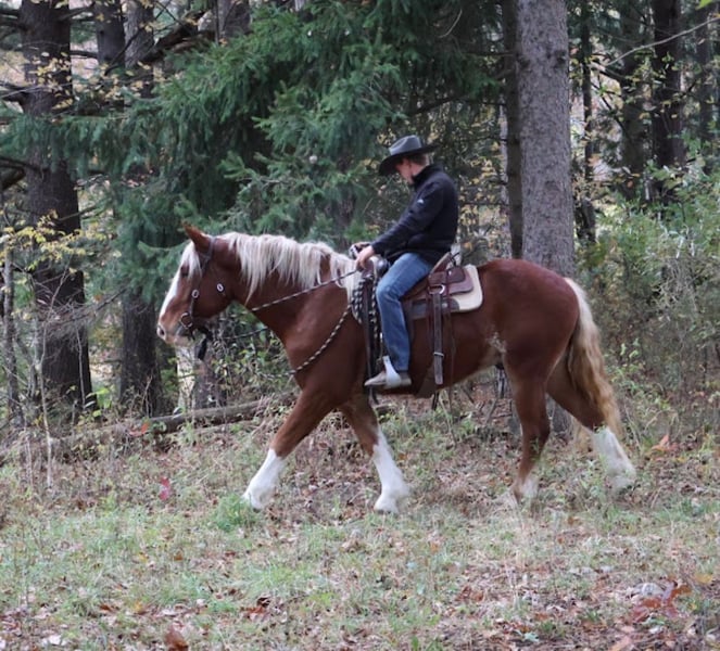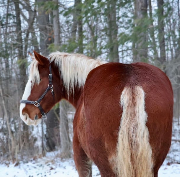 💎 𝐓𝐇𝐄 𝓓𝓲𝓪𝓶𝓸𝓷𝓭 𝐒𝐇𝐎𝐖𝐂𝐀𝐒𝐄 💎 Happening now thru MONDAY | FEBRUARY 23rd - Available EXCLUSIVELY on HorseBid's website! For more details and to register visit: www.Horsebid.com CONSIGNOR CONTACT: Ellesse Schwartz 248-390-6831 LOCATION: Howell, MI BREED: Draft Cross REGISTERED: No COLOR: Chestnut HEIGHT: 16.2 AGE: 5 GENDER: Gelding I am proud to introduce you to Koda! He’s something special, something unique and something with a huge heart. Koda has the appearance of a teddy bear with eyes that bring comfort with a glance. Koda ia a 16.2hh (Belgian 75%, QH 25% cross) who is 5 years old. He’s a stunning light chesthnut with lots of chrome and a stunning flaxen mane and tail. Koda is a very substantial guy. He has great conformation, solid bone structure, excellent hooves and he’s well muscled. Koda is loaded with personality. He gets along with most everything in the pasture from the cows to the donkeys; he’s everyone’s best friend. He can live in or out and is content either way. He loves people and attention. Kids as young as 5 can ride him independently. Koda stands like a rock for grooming tacking and mounting. Under-saddle he comes equipped with 3 stellar gaits, a quiet walk, a floaty trot and the most comfortable canter around. His gaits are all very adjustable. He works off of your seat and leg very well. Koda has been exposed to all types of obstacles such as balls, tarps, pool noodles, bridges and pedestals. He works off leg and seat so well you can pull the bridle and just clip a lead rope to the halter. Koda is more whoa than go. Once you climb on his back this is the horse that will make you want to ride! He’s seen the mountains, open fields, roads, water and woods. He’s been out on several hunter paces. Koda has been camping and picketed and is always game for an adventure. Koda also loves to drive! He’s pulled a carriage in weddings, parades and just around the farm! This boy has great color, excellent conformation, excellent training, loads of experience and a mind to match! He lives in Howell, MI 48855. Call or text Ellesse Schwartz at 248-390-6831 for more information.