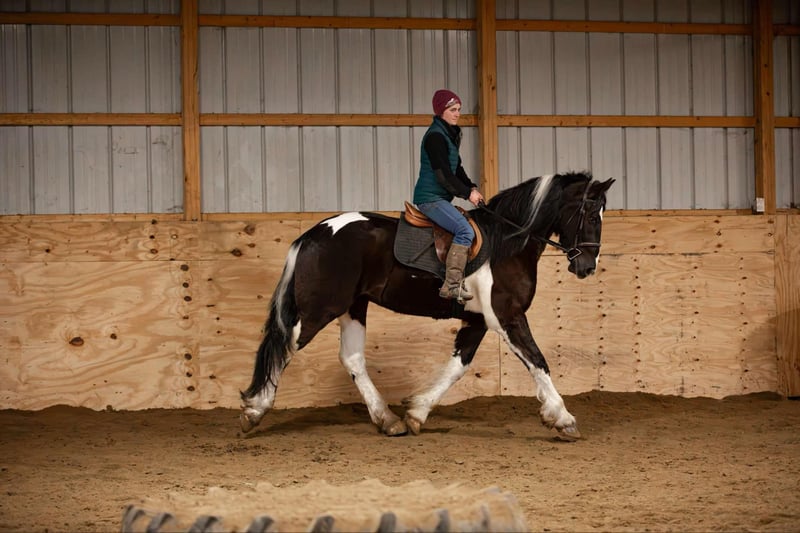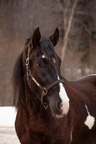 ONLINE AUCTION Place your bids at www.PlatinumEquineAuction.com Starting Bid $3500 Auction ends April 20th, 2025 Need a new saddle? Check out White Rock Saddles on our website or Facebook! O Romeo, Romeo! Here is a 4-year-old draft cross gelding, standing at an impressive 16.3 hands tall. This horse has unlimited potential and is ready to find his forever person. He is a Friesian/ spotted draft cross. This stunning gelding is indeed the whole package from head to toe! Romeo has excellent conformation, clean legs, big bones, and nice big hooves. He has a clean PPE and is ready for his next adventure in life. Romeo is a delight to work on and be around. He stands quietly for the vet and farrier and does not require stocks. He will stand patiently tied while you brush and saddle him up. Romeo loads easily and rides calmly in the trailer; he unloads quietly and is ready to work. He is easy to bathe and pamper and is content in a stall or turned out to pasture. Under saddle, Romeo is a very uncomplicated ride. He is soft laterally, has an excellent “whoa,” moves off your leg nicely, and has a nice back, side passes, and spins. Kids, teens, and adults have ridden him, and they all enjoy him; he can take a joke and will try anything you ask! He recently went to Equifest, where a youth rode him in an opening ceremony carrying a flag. We have been riding him both English and Western and have found he is versatile and happy in both disciplines. He is quiet and confident on the trail and will go anywhere you point him. He easily navigates rough terrain up and down grades, through water, over downed trees, and trailblazing through the woods. He has been exposed to cows, dogs, goats and sheep. He recently went on a week-long trail-riding camping trip to Kansas and loved it. Romeo will trot poles and take a jump with ease. Don’t feel like riding? Then take him for a drive! Romeo hooks quietly and drives off calmly. I believe this gelding would make an excellent mount for anyone looking for a quiet and simple horse to take from the arena to out on the trail and even into the show pen; his willing mind and calm demeanor make him a super adaptable and easy horse to get along with no matter the level of rider/handler. He sells sound without vices or limitations. We are located in Warsaw, NY. Contact Dayton Wolcott for more information 585-734-0169 ONLINE AUCTION Place your bids at www.PlatinumEquineAuction.com Starting Bid $3500 Auction ends April 20th, 2025 Need a new saddle? Check out White Rock Saddles on our website or Facebook!