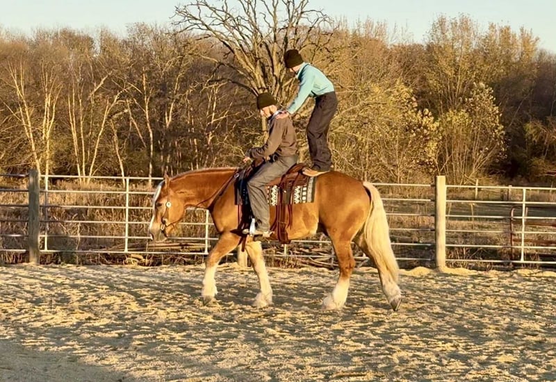 ⚜️ 𝓽𝓱𝓮 𝐇𝐨𝐫𝐬𝐞𝐦𝐚𝐧'𝐬 𝓢𝓱𝓸𝔀𝓬𝓪𝓼𝓮⚜️ Happening now thru MONDAY | DECEMBER 1st - Available EXCLUSIVELY on HorseBid's website! For more details and to register visit: www.Horsebid.com CONSIGNOR CONTACT: Platinum Star Stables 260-977-9095 LOCATION: Independence, Iowa BREED: Draft Cross REGISTERED: No REGISTERED NAME: Patrick COLOR: Palomino HEIGHT: 15.2 AGE: 5 GENDER: Gelding If you have been looking for the PERFECT addition to your stable then you have found the right horse! Patrick is a stocky built, 15.2hh, 5 year old, Draftcross, gelding with movie star good looks, muscles upon muscles and a heart of gold! What color is he? We aren't sure either, he is what some folks call a dark palomino while others call him a golden sorrel... either way he shines and sparkles in the sunlight and he is as flashy as the day is long! Patrick has completed our program with flying colors! Everything that we have asked him to do, Patrick has done with ease and training him has effortless as he is totally agreeable to do whatever that is asked of him. Patrick is trained to lay down on cue and he likes to show off his talents. He is a horse that is very laid back and a horse that will build his riders confidence levels. Patrick is safe for the whole family to ride from the little kids to the eldest granny, anyone can have an enjoyable ride on this guy. No shocker that with a horse this gentle, he is everyone's best friend and loves any type of attention, especially grooming. Patrick has a smooth trot, takes his leads and will lope nice circles. He neckreins around, has a good stop, sidepasses to open/shut gates, moves off of leg pressure and backs with ease. He rides well indoor or anywhere outdoor. Not only does he go western but he goes english and will go over jumps. He holds steady coming into the jumps and lands balanced. Patrick has been exposed to all kinds of wildlife and he has been ridden in the mountains. Patrick is great on the trails, he picks his way through rocky terrain, crosses deep water, scales slopes with ease and walks across deadfall as well. He has also been driven down the highways under harness and is traffic safe. We have ridden him through town and he is totally safe there as well. Patrick sells with no bad habits, he has never been lame and has a clean vet exam on file. Whether he is ridden by a professional, total novice, the kids or whether you want to ride around the ranch, trails, drive, do jumps or just lay down and take a nap together… Patrick can do it all and do it all RIGHT! We are totally confident in Patrick and offer a 2-week replacement 100% satisfaction guarantee. We can assist with shipping to any state. Please call Ervin at 260-977-9095 to set up a time to come see Patrick in person or to ask any questions about him. Our line is set up for calls only so NO TEXT PLEASE!!! We look forward to working with you, God Bless!