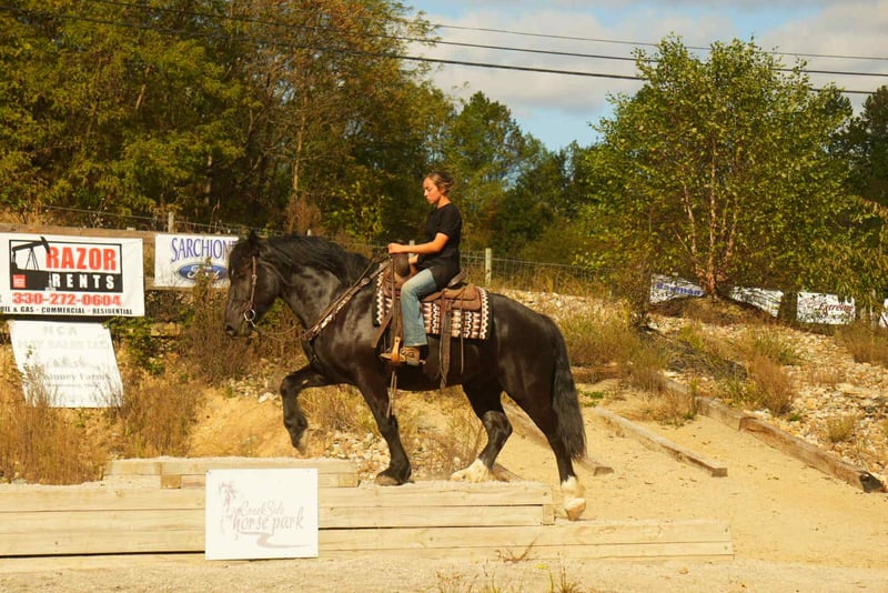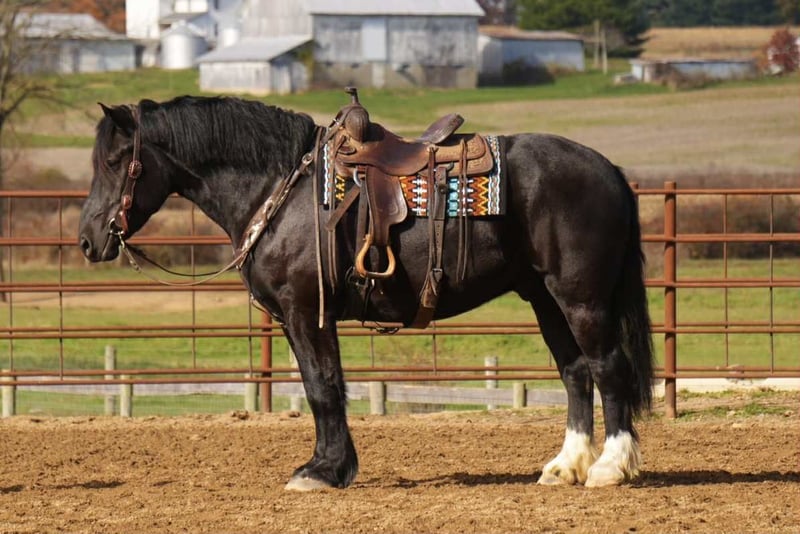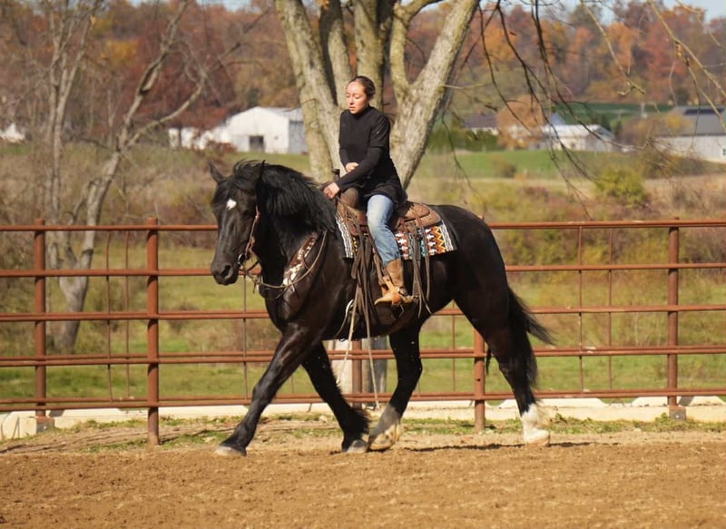 🎲𝓽𝓱𝓮 𝐑𝐈𝐃𝐄𝐑'𝐒 𝓒𝓱𝓸𝓲𝓬𝓮🎲 Happening now thru MONDAY | NOVEMBER 17th - Available EXCLUSIVELY on HorseBid's website! For more details and to register visit: www.Horsebid.com CONSIGNOR CONTACT: MW Equine Stables LLC 330-365-0236 LOCATION: Fresno, OH BREED: Draft Gypsy Cross REGISTERED: No REGISTERED NAME: COLOR: Black HEIGHT: 16 AGE: 5 GENDER: Gelding 💥Mo is a breathtaking 2020 model Draft x Gypsy cross gelding, standing a solid and impressive 16 hands tall. His striking dapple-black coat makes him a showstopper everywhere he goes, but it is his kind heart and willing disposition that truly set him apart. Raised on a family farm, Mo was given a careful and thoughtful foundation, and it shows in the way he handles himself . This gentleman has been ridden Western, and English, in the arena, and outside on the trails. Making him versatile and ready to go in whichever direction you would like. Mo has been on state roads and is completely traffic safe. He crosses water with ease, good with the tarp and will roll the ball, and stays steady in new surroundings. Whether in the arena or on the trail, he carries himself with confidence. Mo is a true joy to be around in the barn and pasture. He gets along well with other horses, is easy to handle. He has three very smooth and comfortable gaits, and his rocking-chair lope is the kind you can sit all day long. If you have been searching for a safe, steady, and dependable partner that combines the presence of a draft horse with the training and temperament of a family-raised gelding, Tiny is the full package. From carrying you on a quiet evening ride, to a fun day at the obstacle course challenge, he is the kind of horse that makes every day better. If this sounds like the horse that you have been looking for, please feel free to reach out to Marcus @ 330-365-0233. for more information or to schedule a day to see him in person. Located in Baltic Ohio