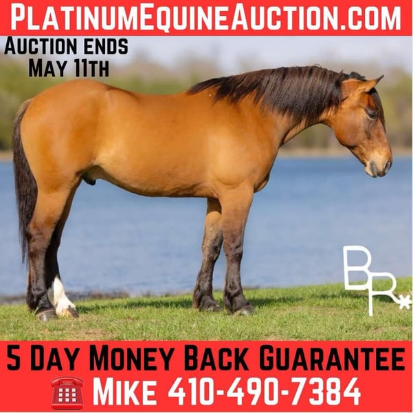 ONLINE AUCTION Place your bids at www.PlatinumEquineAuction.com Starting Bid $3500 Auction ends May 11th, 2025 Need a new saddle? Check out White Rock Saddles on our website or Facebook! This guy is one for the magazine covers! Burt is a 5 year old, 16.2H, gelding and he is the total package of performance meets excellence all wrapped up in a gorgeous lineback dun color. He may be tall but Burt has a gentle, in your pocket, puppy dog personality. Always the first to greet you at the gate. Stands tied quietly to be groomed and saddled. Always wants to know what you are doing and ready for the next adventure. Absolutely stunning mover to ability to go in just about any direction possible. Very well broke in the bridle, necks reins and very responsive to the leg. For this reason, Burt is not suitable for a beginner but a novice and up rider would get along perfectly fine. Trails rides and has performed all the trail obstacles. Started over fences with scope to easily make a very nice jumping horse. Would also make an exceptional dressage prospect. If you like riding the super broke ones and wanted a young horse to take any direction of your choosing this is the right guy. These type do not come often. This very special gelding has been in the program at Beaver Ranch and we stand behind him 150%. Check out our video highlighting everything from saddling, loading, trail riding, obstacles, jumping and Walk, Jog, Lope. Sells with UTD basic PPE, Coggins, Health Papers, Vaccinations, Dentist, Farrier We HIGHLY encourage customers to come try our horses in person before buying to ensure an excellent fit between horse and rider. We are so confident that you will love our horses that we will personally cover all travel and lodging expenses for the winning bidder if they come try before they buy/bid. While here you are welcome to try our horse any where/way that you like, on the trails, out on the ranch, in the arena or working cattle. Anyone who comes to try out horses in person will receive a 5 day money back guarantee from time the horse arrives in your possession. Also included will be the option to receive a 1 hour riding lesson with Beaver Ranch to better learn how to communicate with your new horse. NOW AVAILABLE!- Facetime/Skype video call meet and greet with Burt. Anything from handling/saddling to riding can be accommodated subject to availability. For more information on Burt or to schedule a time to visit Burt please contact Beaver Ranch Mike 410-490-7384 or Lindsey 443-786-5611. ONLINE AUCTION Place your bids at www.PlatinumEquineAuction.com Starting Bid $3500 Auction ends May 11th, 2025 Need a new saddle? Check out White Rock Saddles on our website or Facebook!
