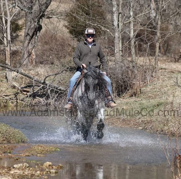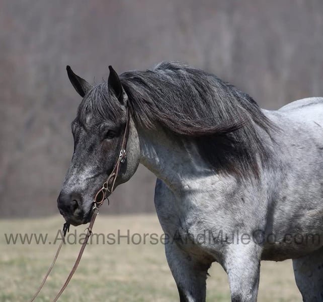 Go to visit our website for more pics and a video. AHAMC has been in the horse business and sold horses over the internet since 2005. We have a long track record of success with hundreds of happy customers. We work hard to match riders with the correct horses and specialize in beginner safe, family friendly horses that have been used and checked out by our family! We can set up transportation anywhere in the US and look forward to working with you.Prince is as cool as any horse that you will see! He is a true blue roan draftcross that stands 16.2hh that will weigh around 1400lbs and he is a 5 years old. Prince is certainly an attractive fellow but there is a lot more to him than what meets the eye! Prince is everyone’s best friend as he loves attention and is very calm natured. Prince is out of the same breeding program as several other top draftcross geldings that we have had over the last 5 years and every one of them has the right mind with the calm nature that makes them great family horses. We have got Prince started on learning some tricks such as to lay down and set. Prince has been ridden by every member of our family all the way down to our 6 year old daughter. He has been ridden down the highways and he is traffic safe as well. Prince is great on trails and he will cross creeks, ditches, logs and navigate rough rocky areas. He has a smooth jog, a VERY VERY nice easy to set lope and a good stop! He has been exposed to all kinds of wildlife such as deer or turkey or other animals like cows or dogs and will go anywhere that he is asked too. He has been rode many miles in the mountains of Eastern Kentucky and encountered every obstacle possible on the trail. He will go up or down even the steepest slopes, across deep creeks, over downed trees, and over all types of rough terrain while still being sure footed. Prince is not cinchy, cold backed, does not crib or weave. In addition to riding, Prince has also been worked around the farm as well. Prince is a rare find that anyone is lucky to have!!! Feel free to call Eric 606-308-2461 with any questions. Go to visit our website for more pics and a video. AHAMC has been in the horse business and sold horses over the internet since 2005. We have a long track record of success with hundreds of happy customers. We work hard to match riders with the correct horses and specialize in beginner safe, family friendly horses that have been used and checked out by our family! We can set up transportation anywhere in the US and look forward to working with you.