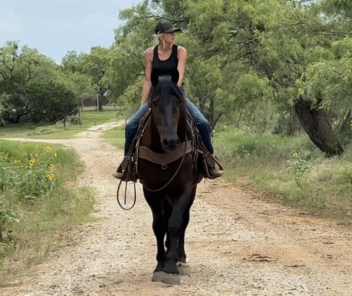 ONLINE AUCTION Place your bids at www.PlatinumEquineAuction.com Starting Bid $3500 Auction ends July 20th 2025 Need a new saddle? Check out White Rock Saddles on our website or Facebook Black Gold is a 16.3 hand jet black Percheron gelding at the prime age of 5 years old. He has a heart made of gold that anyone and everyone will love. Black Gold is broke to drive and ride and excels at both. He is as gentle as they get from ground manners to under saddle. He is the grandma safe, throw your kids on, beer drinking down the trails type of guy. He is solid, steady, only goes as fast as asked for and is not spooky in any way. He goes out alone confidently or will follow a lead horse. His gaits are smooth and enjoyable. You can sit his jog easily. Black Gold neck reins, rides loose reined and moves off leg very well. Great brakes, side passes etc. I’ve ridden Black Gold out on the ranch for hours with no bridle. He is as trustworthy and rock solid as they get. Black Gold is friendly, easy to catch, and enjoys attention and going and doing things. He has a very willing and happy demeanor about him and always has his ears perked. He is quiet to saddle, good with his feet, stands tied and hauls like a gentleman. He respects personal space and stands for mounting. Black Gold is sound and straight/clean legged. FMI call/text Holland Horse Co. Chanel 559-978-6320. We are happy to answer questions, arrange a test ride or help arrange shipping nationwide. ONLINE AUCTION Place your bids at www.PlatinumEquineAuction.com Starting Bid $3500 Auction ends July 20th 2025 Need a new saddle? Check out White Rock Saddles on our website or Facebook