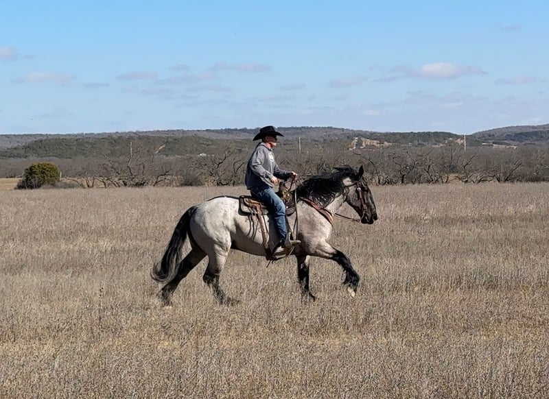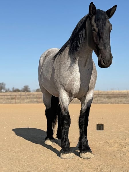 ℳ𝒶𝓇𝒸𝒽 ♦️𝐑𝐈𝐃𝐄𝐑'𝐒 𝐂𝐇𝐎𝐈𝐂𝐄♦️ Happening now thru MONDAY | MARCH 9th - Available EXCLUSIVELY on HorseBid's website! For more details and to register visit: www.Horsebid.com CONSIGNOR CONTACT: Holland Horse Company 559-978-6320 LOCATION: Weatherford, TX BREED: Draft Cross REGISTERED: No COLOR: Blue roan HEIGHT: 18 AGE: 6 GENDER: Gelding Viggo is a 2020 jaw-dropping powerhouse of a gelding standing a true 18 hands tall. Viggo is built strong and solid with excellent bone, yet he moves like a Cadillac and has an impressive amount of athleticism. He has three of the smoothest gaits you will ever sit — his jog is effortless and comfortable enough to ride all day, and his lope truly feels like he is floating. Viggo is well broke both English and Western. • English: Rides soft and easy in a simple snaffle, lightly started over fences and takes to it naturally. • Western: Rides one-handed in a bridle, loose-reined, and happily travels at whatever pace is asked of him. Outside the arena, Viggo shines just as bright. He is exceptional on the ranch and the trails — calm, steady, and genuinely enjoys exploring. He will cross water, logs, bridges, and rough terrain without hesitation and will go all day if you ask him. Viggo is a truly special horse who enjoys bonding closely with his person. He can be slightly nervous when first approached on the ground, but once he warms up he absolutely loves attention (and treats!). He is extremely intuitive, alert, and always tuned in to his rider. He has impeccable ground manners and is very respectful. In turnout he is playful and gets along well with others, yet he is quiet and mannerly in a stall. He is sound, straight, and clean-legged with rock-hard feet and has always been kept barefoot. FMI: Call or text Chanel – Holland Horse Company 559-978-6320 We are happy to tell you more about this guy and answer any questions you may have.
