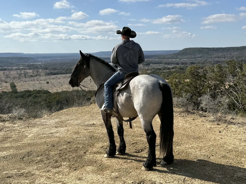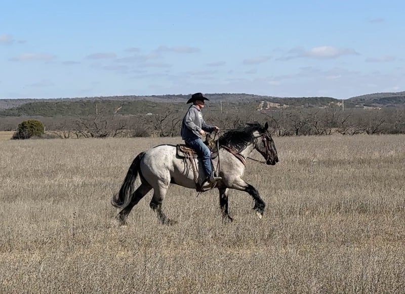 Splendido castrone di 6 anni, robusto e versatile, di colore blue roan, incrocio draft.